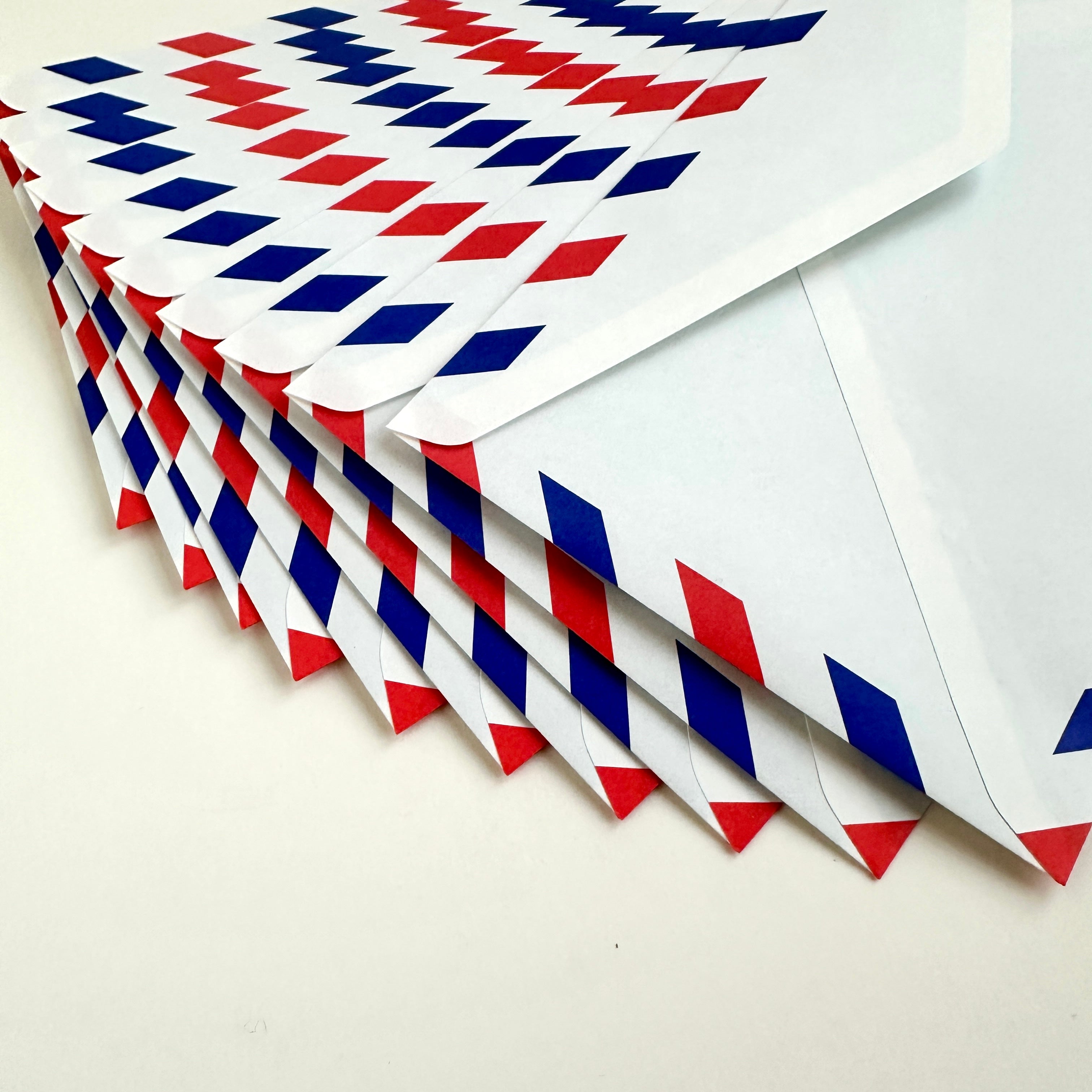 Classic red and blue stripe air mail envelopes.