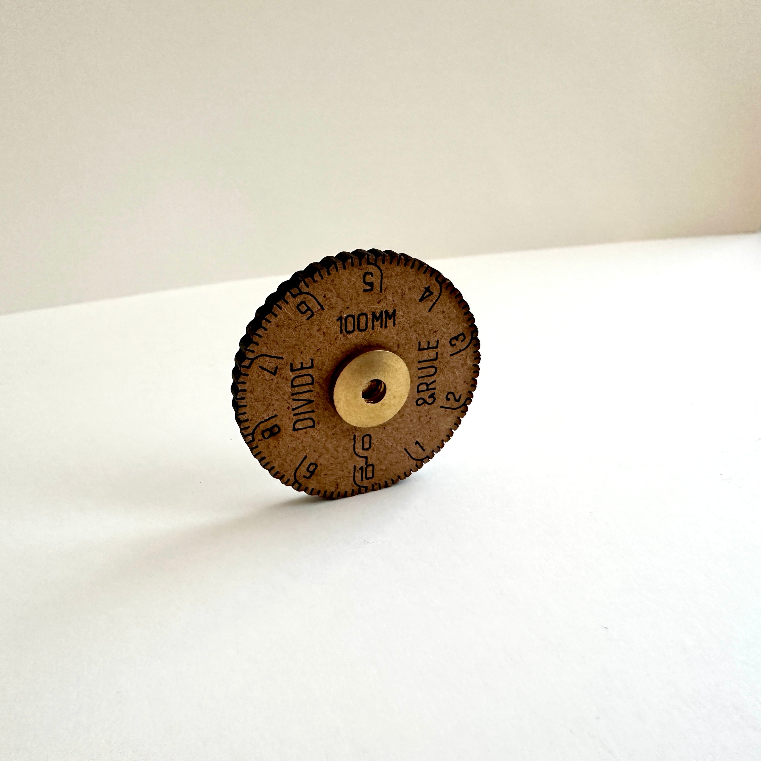The Measure Wheel 100mm is a pleasing pocket alternative to a tape measure. Simply grip the measure wheel with two fingers on either side of the brass axle, align the 0 marker with your start point and then roll the wheel along any surface you wish to measure. As you complete each 100mm revolution there is a discernible bump and when you reach your end point simply refer to the markings on the side of the wheel to calculate your total distance.