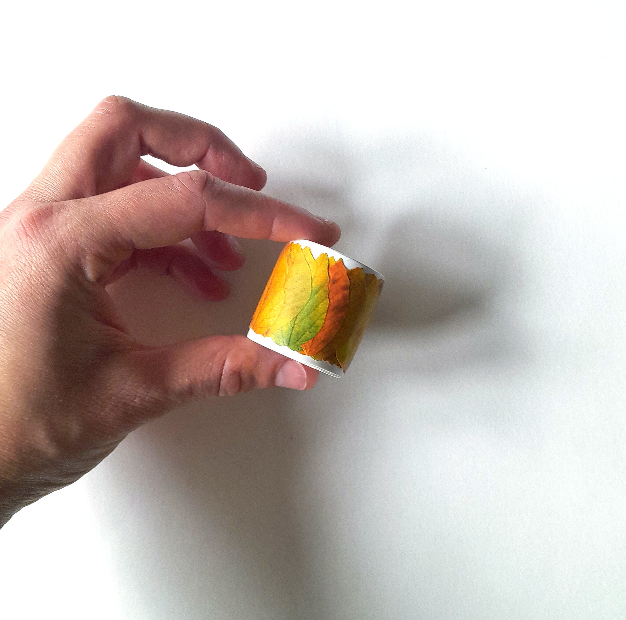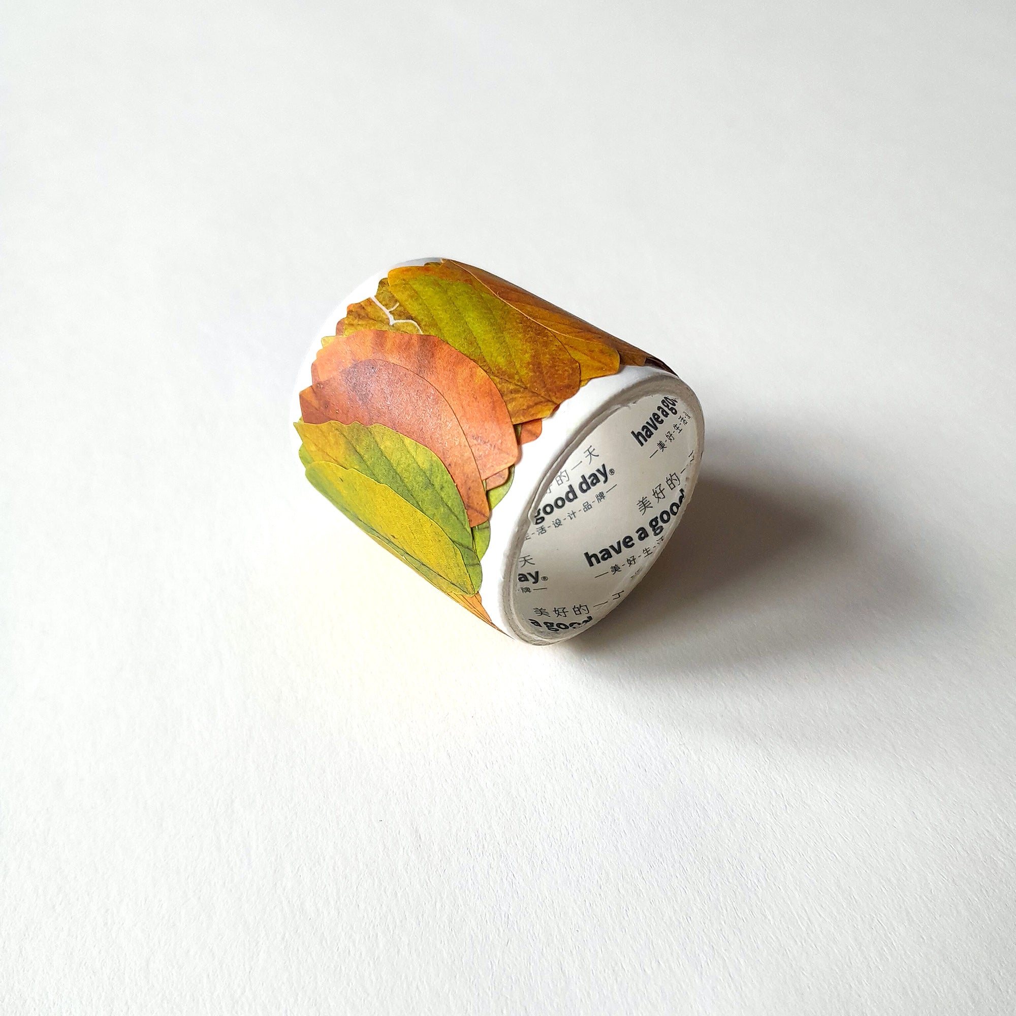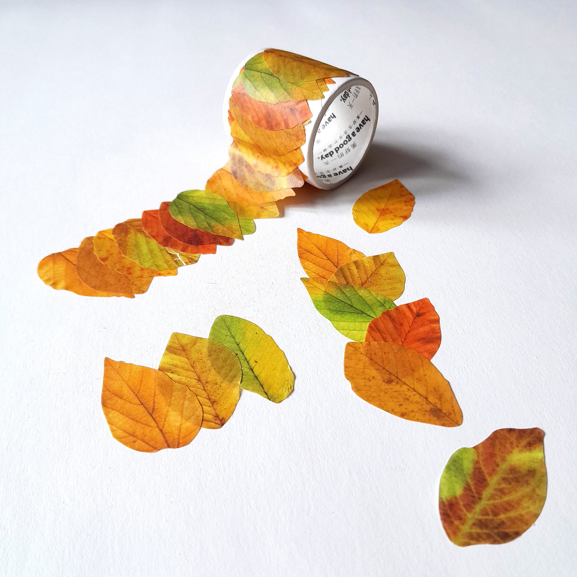 Roll of washi tape leaf stickers with beautiful autumnal colours and patterns. The leaves can be unrolled together as a strip, or peeled apart to use individually. Perfect for decorating notebooks, scrapbooking or making collages. Each roll contains x50 leaves.