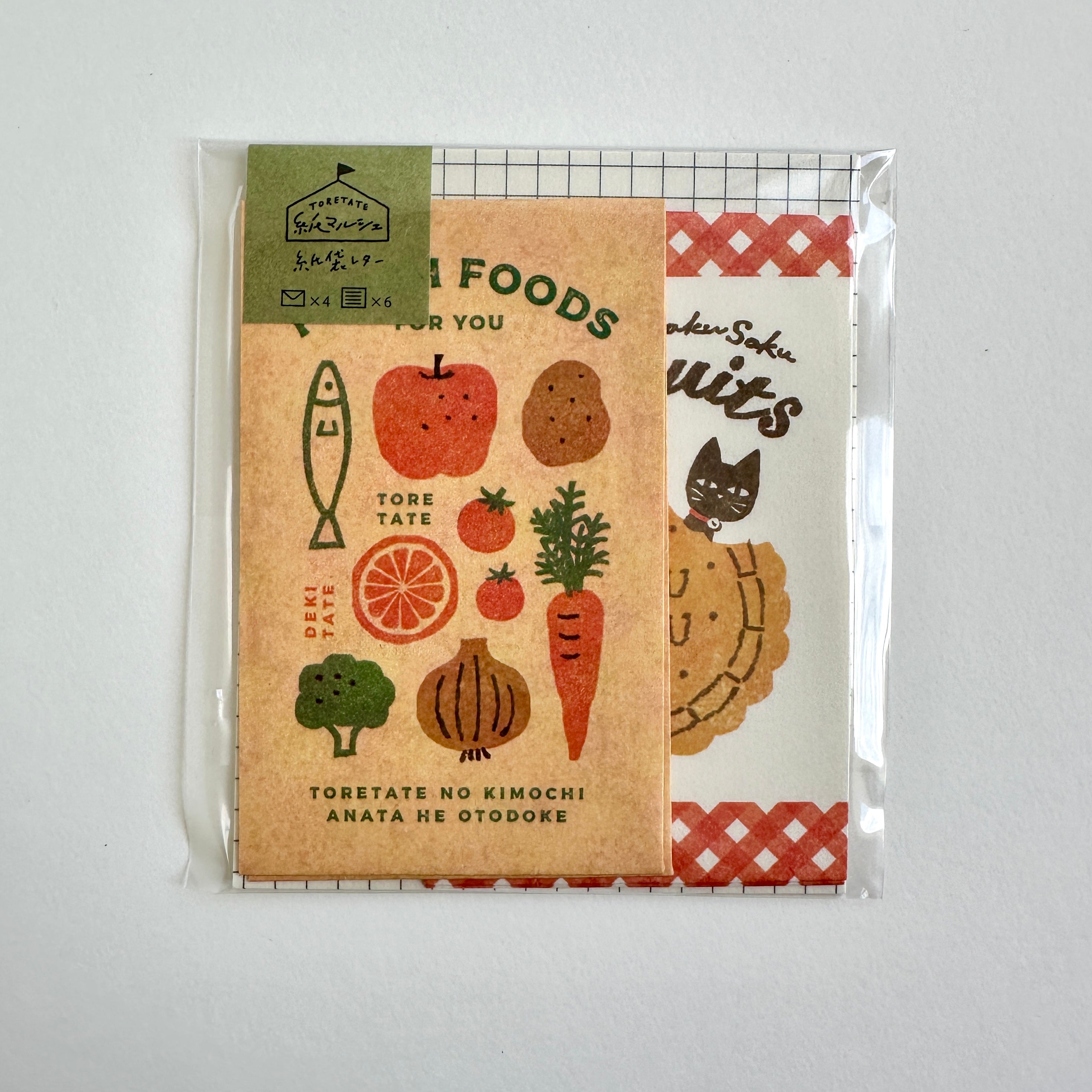 6 sheets of writing paper with 4 envelopes (2 patterns, 2 sheets of each pattern).