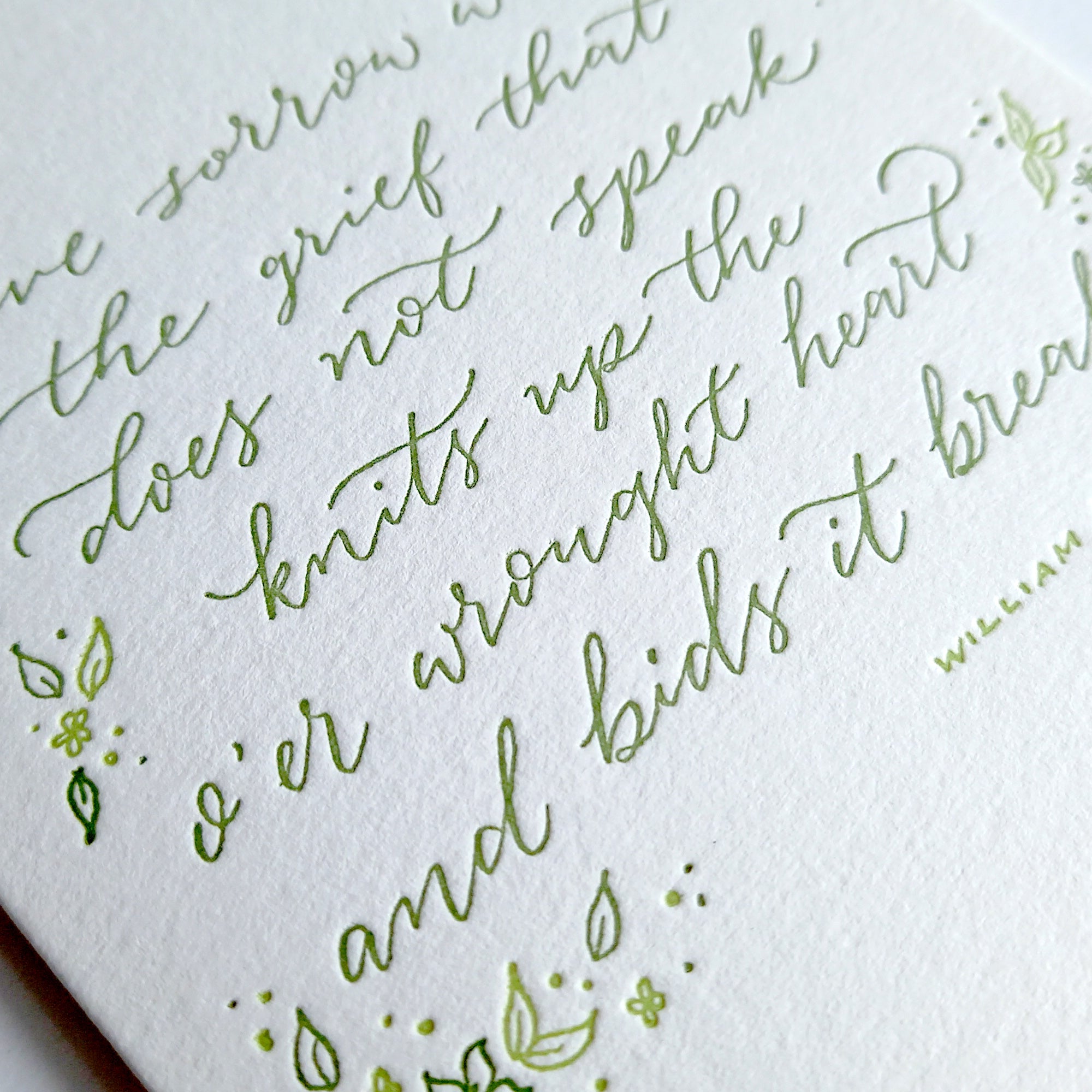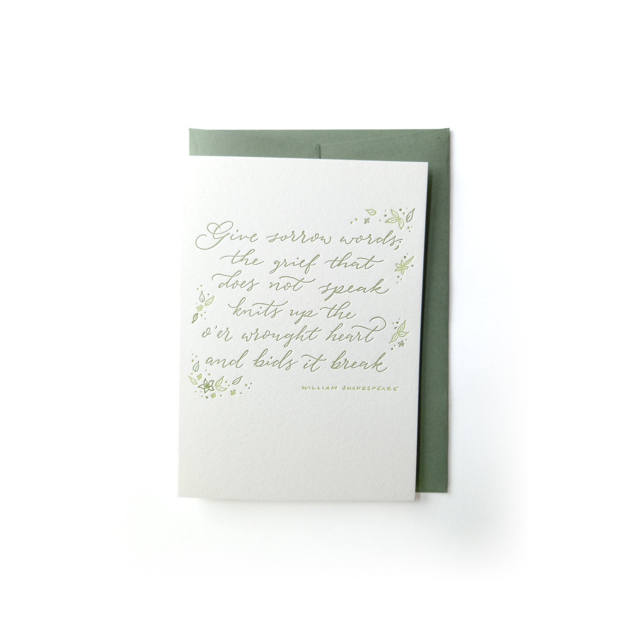 “Give sorrow words; the grief that does not speak knits up the o'er wrought heart and bids it break.” - William Shakespeare