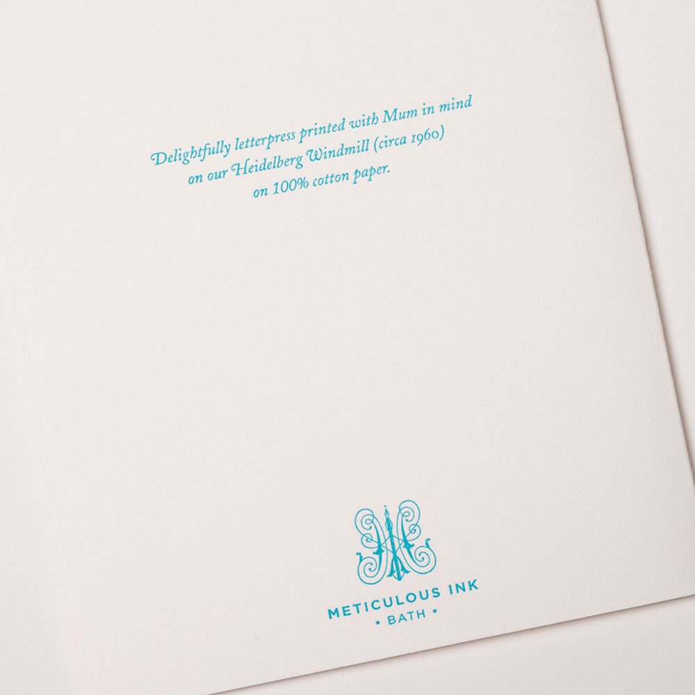 All our cards are illustrated, designed and printed in house at Meticulous Ink, Bath, UK. Each card has been lovingly letterpress printed on our 1960s Heidelberg Windmill printing presses.