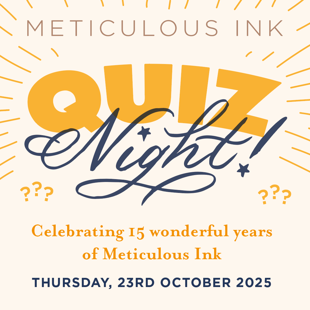 Meticulous Ink turns 15 this October and we'd love you to celebrate with us at a thoroughly ink-redible Quiz Night! We'll be taking over the first floor of The Westgate on the evening of Thursday, 23rd October.