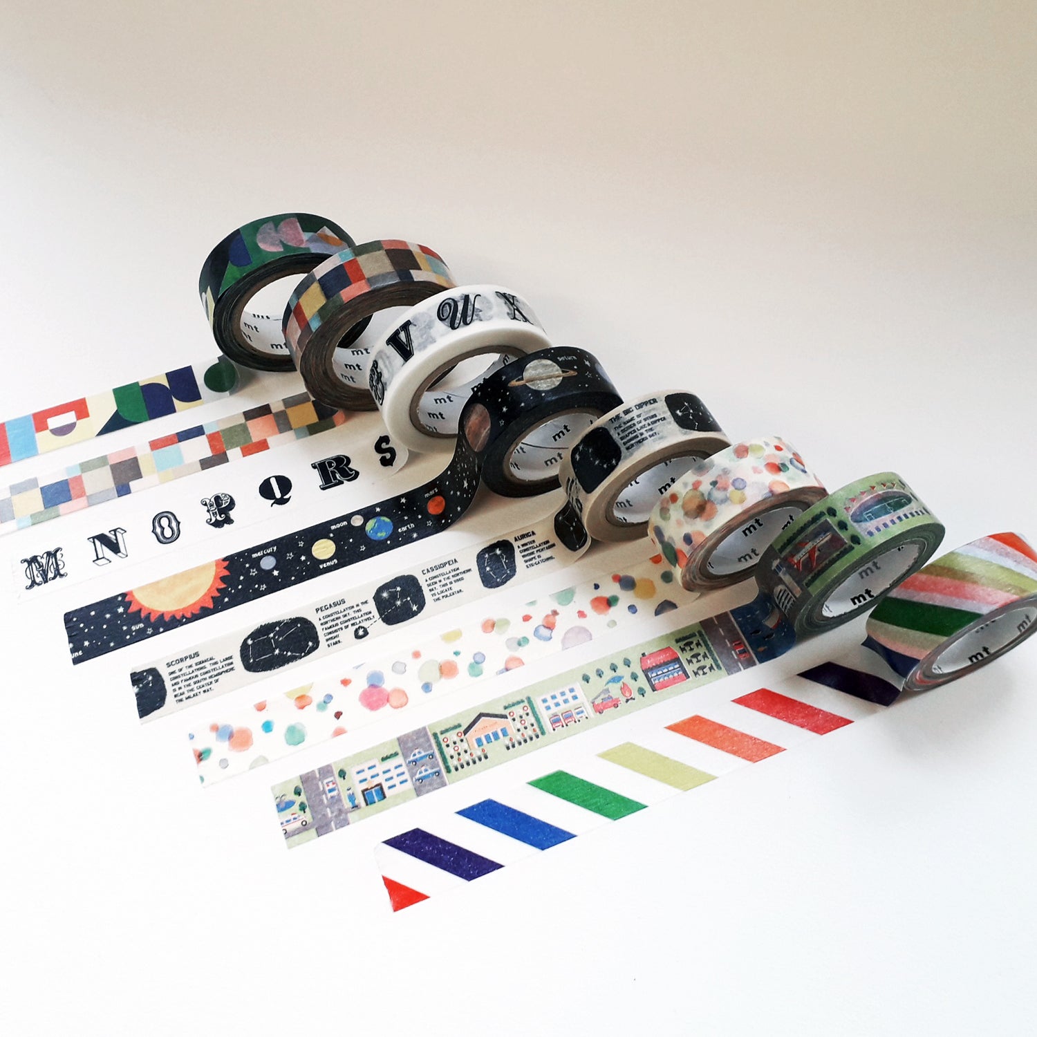 With MT washi paper tape you can stick, cut, tear, layer, write on & stamp... the possibilities are endless! Perfect for personalising gift wrap, brightening up walls and generally decorating all of the things, this versatile tape tears off easily, sticks immediately and peels off without leaving a trace. Choose from over 20 designs, ranging from multicolour geometric patterns to playful, detailed pictures.