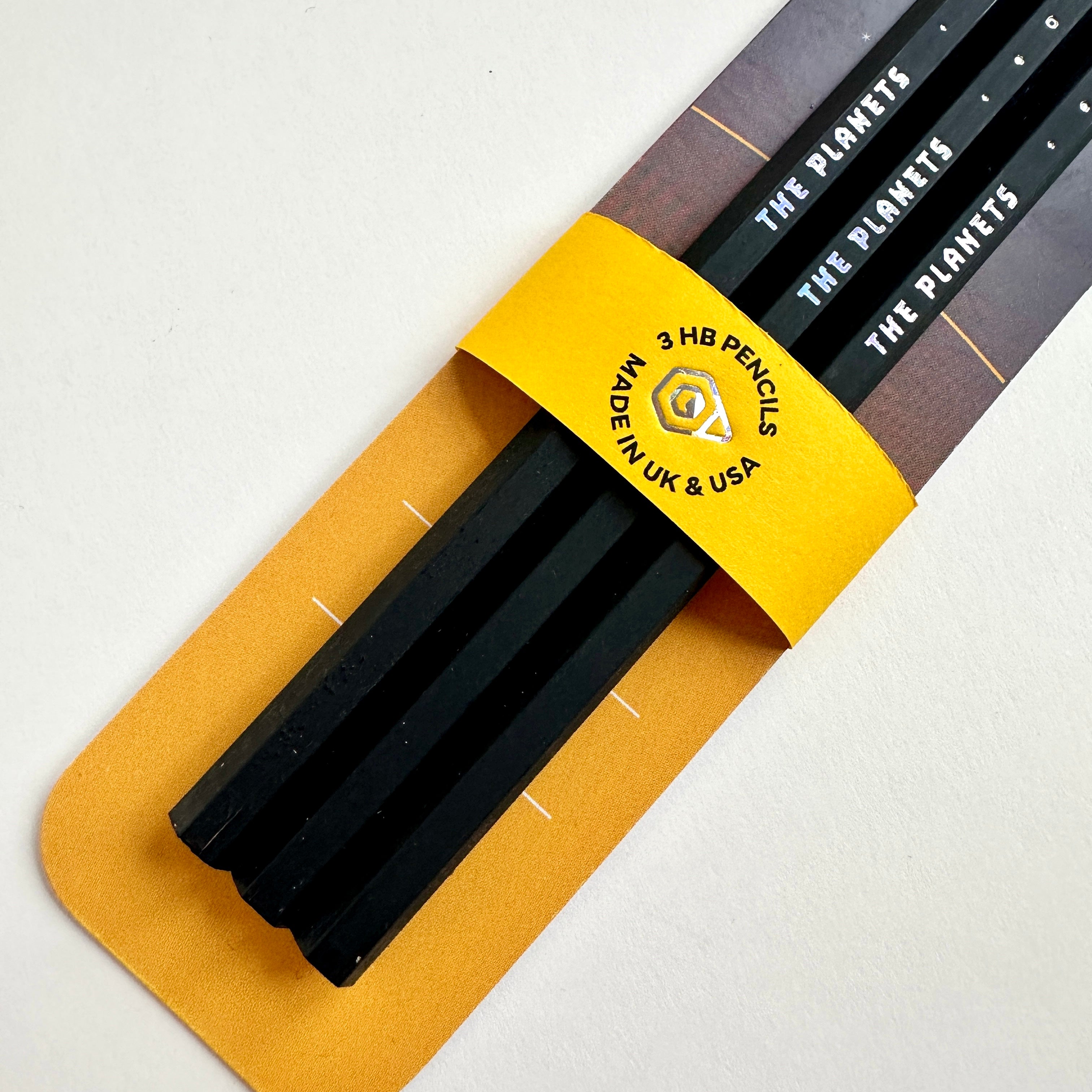 Sharpen your way through a sparkling alphabet, see the planets align or choo-choo your way through these perfect pencil packs. These fabulous pencils are made in the US and printed here in Bath with unique designs to entertain your creative kids. Each pack includes three HB grade pencils with four designs to choose from.