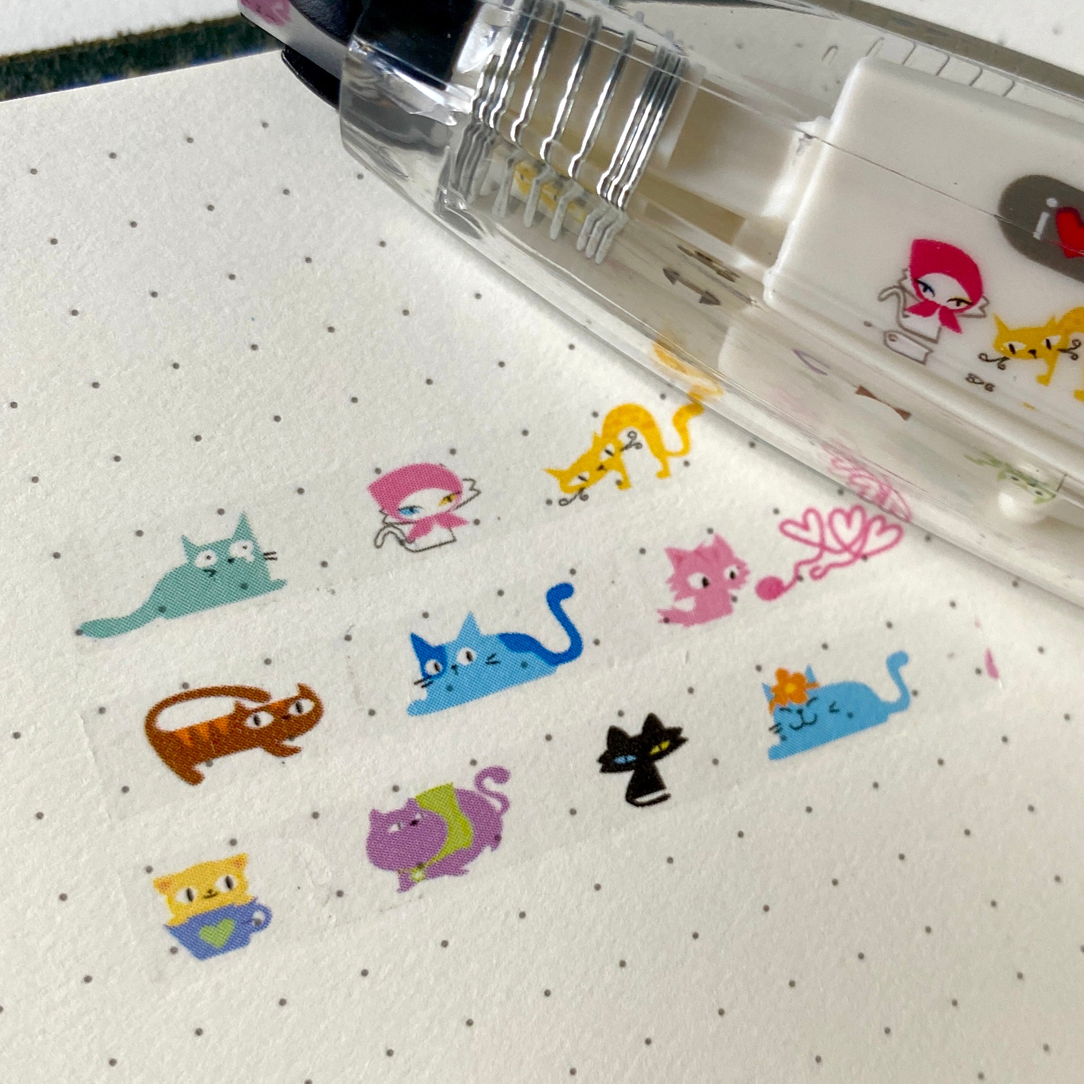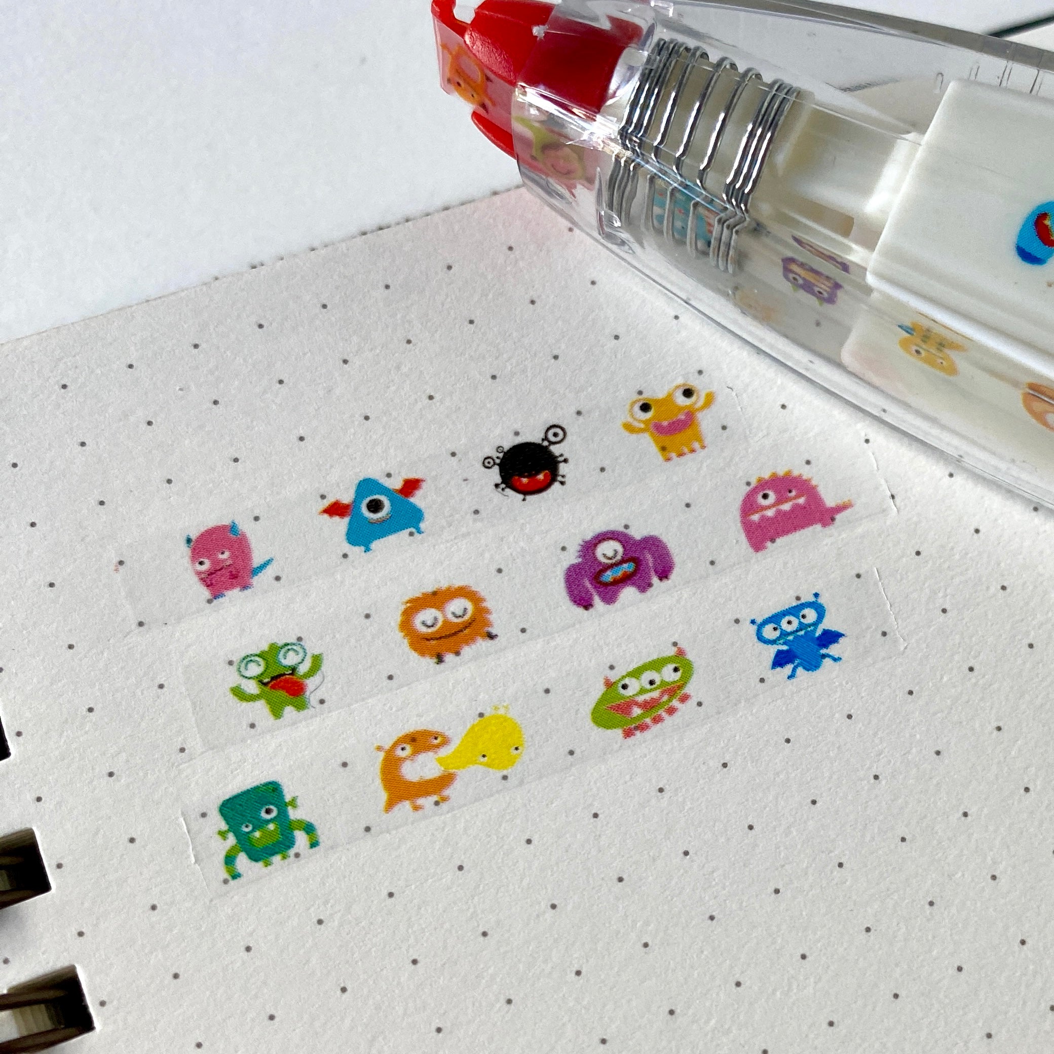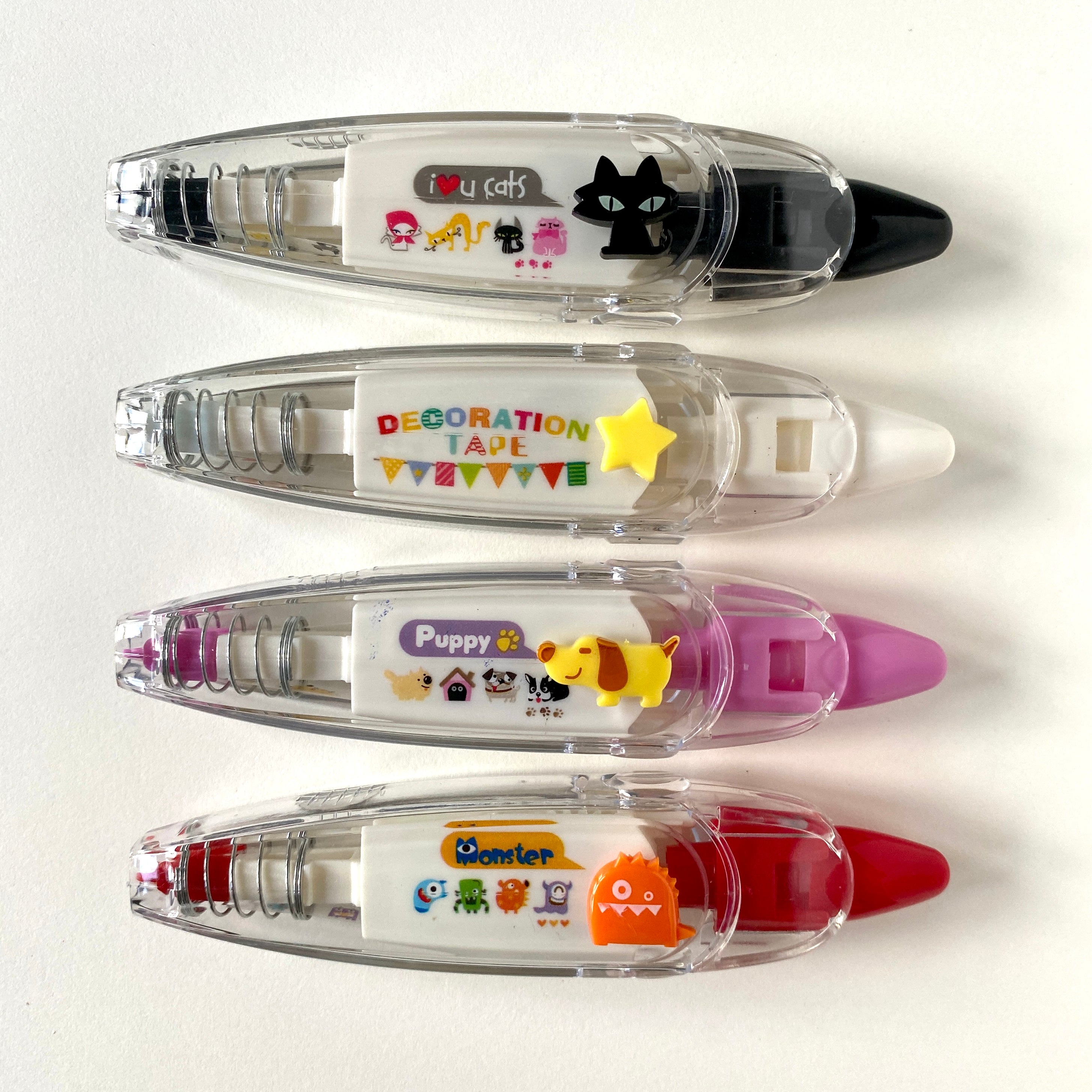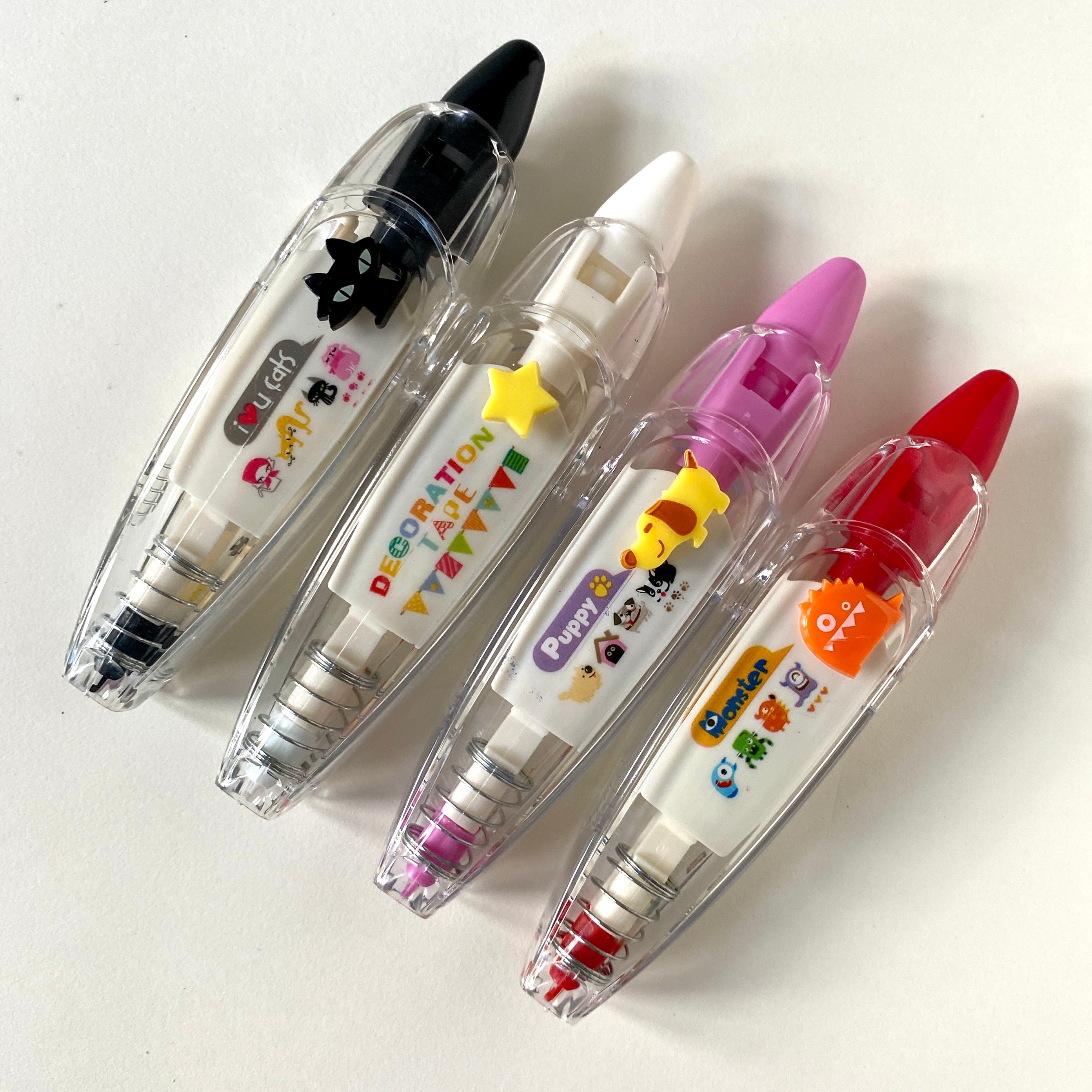 These Decorative Tape Rollers create incredibly pleasing rows of pattern and joy to your notebooks and scrapbooks. each one features an assortment of relevant illustrations along the tapes. Very easy to use, they work like corrective tape - simply click the retractable end, place the tip flat on your page, then apply even pressure while pulling the tape across. When you are done, release the pressure and remember to click the end to keep the tape safe. A fantastic way to decorate your pages and satisfying to glide across the page.