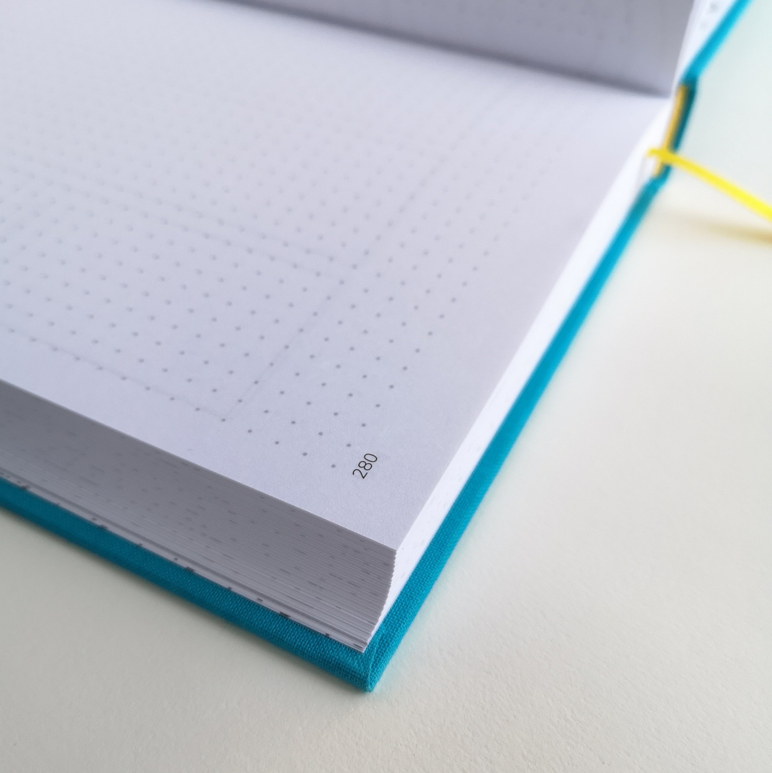 With a blue cloth-bound hardcover and yellow silk ribbon, this journal is a delight to behold.