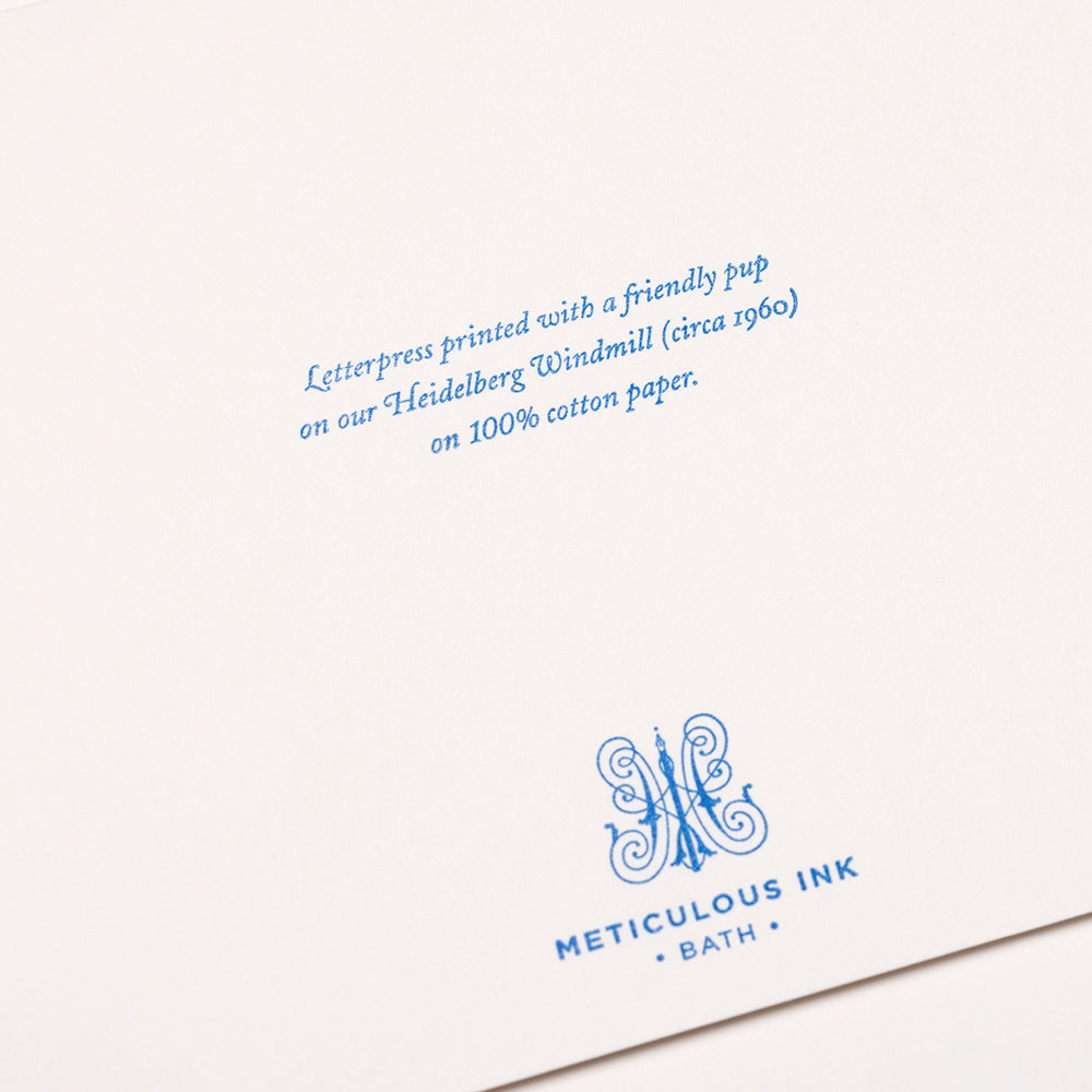 Each single card is letterpress printed in pink ink onto our very own Walcot Wove 300gsm card with an island pink tissue lined, C6 envelope.