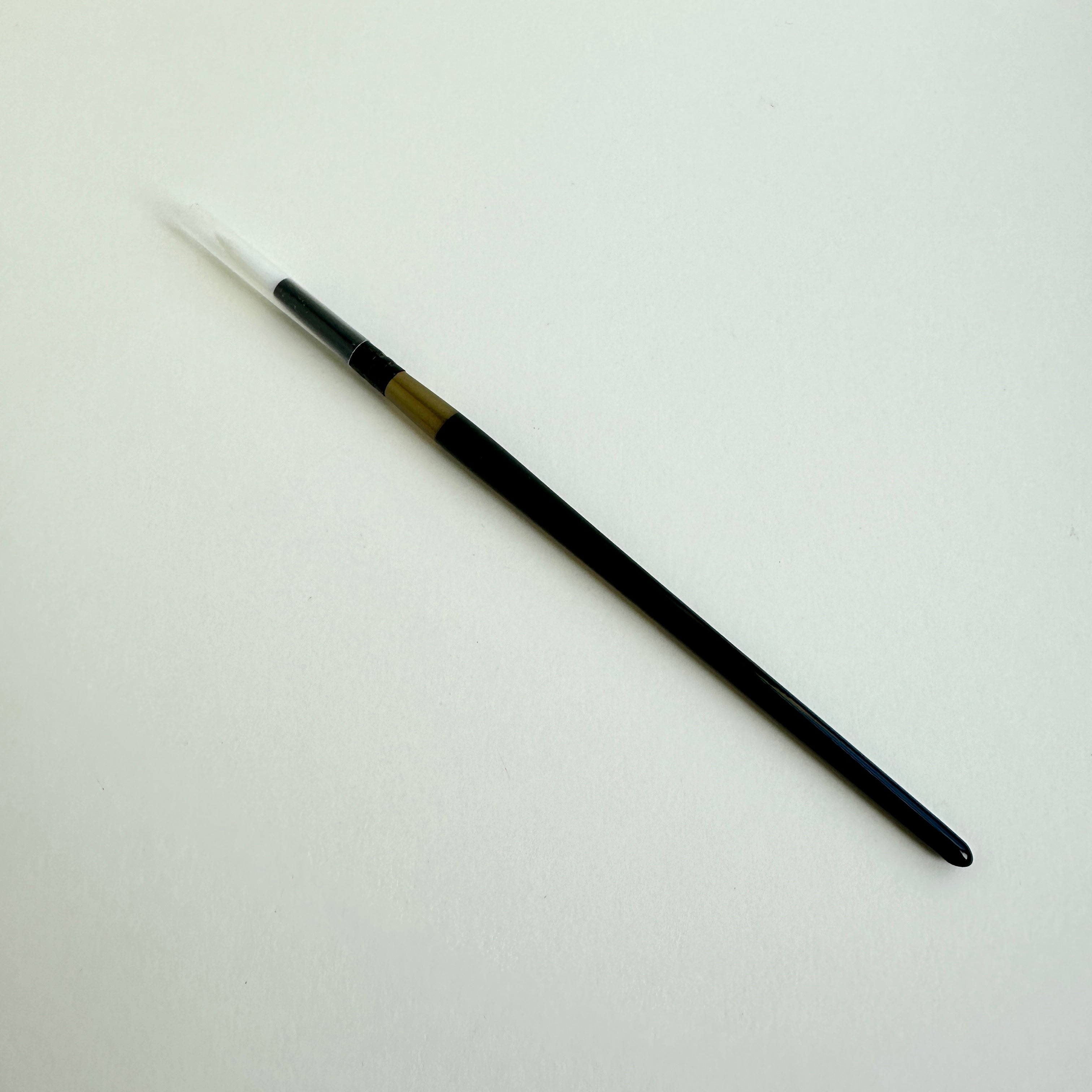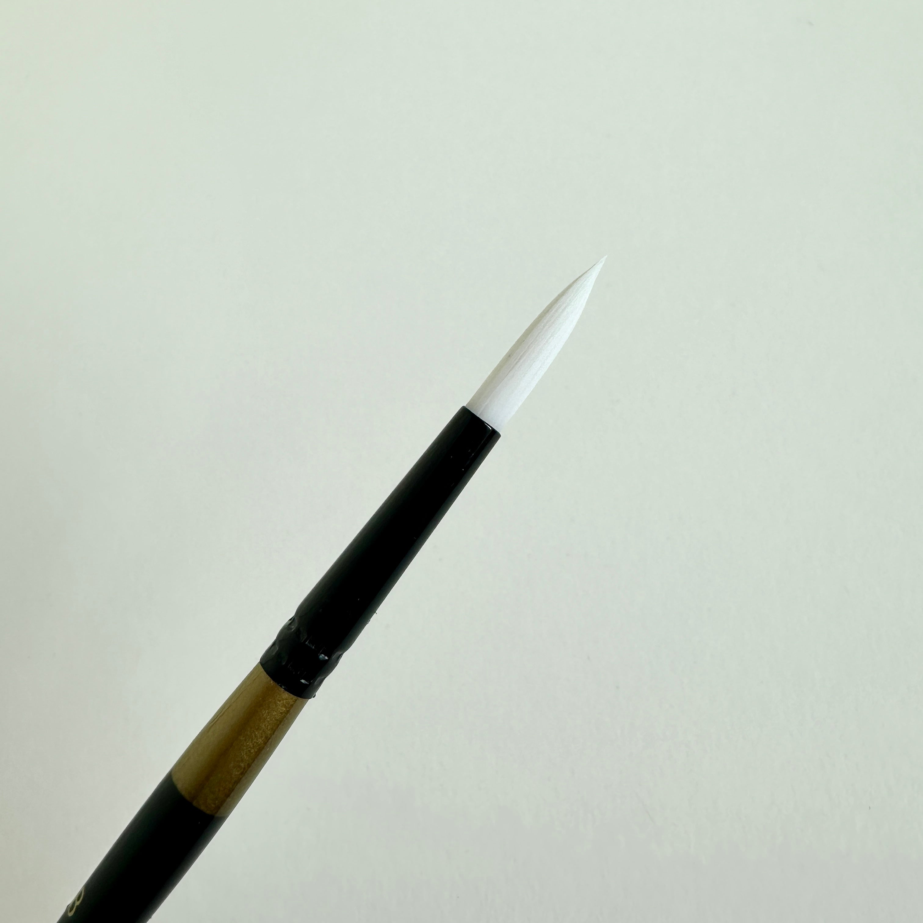Made with White synthetic bristles and a short black wooden handle with a gold band, to give a true quality feel.