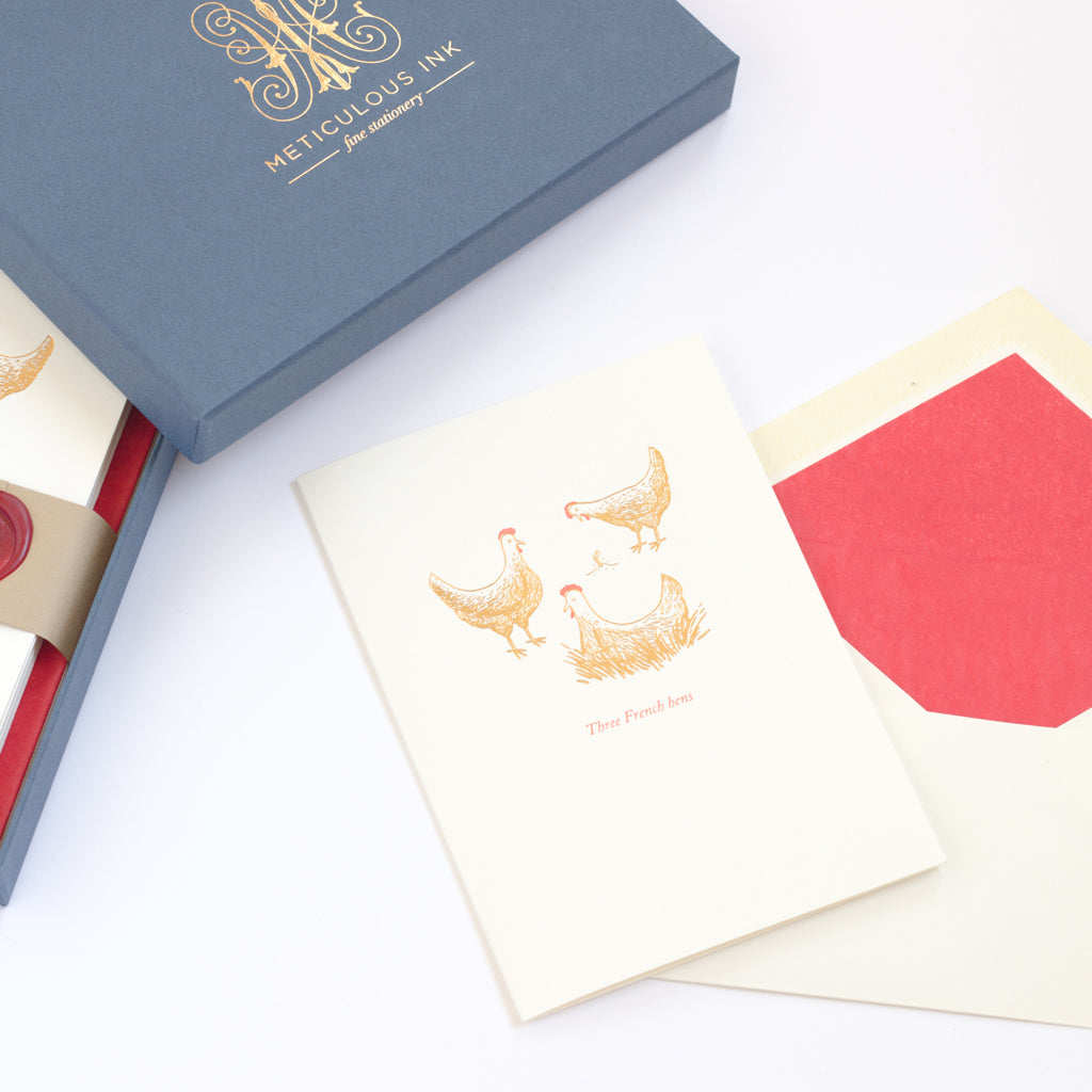 These are available individually or as a box set. Each box set contains 6 folded A6 cards with 6 matching C6 envelopes. All presented in a beautiful box and finished with our wax seal. Please note, we are moving to high quality, colourful envelopes to replace the tissue lined ones pictured.