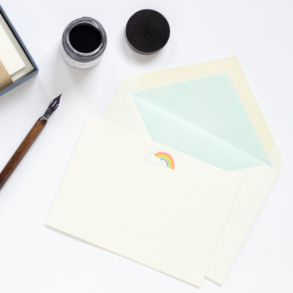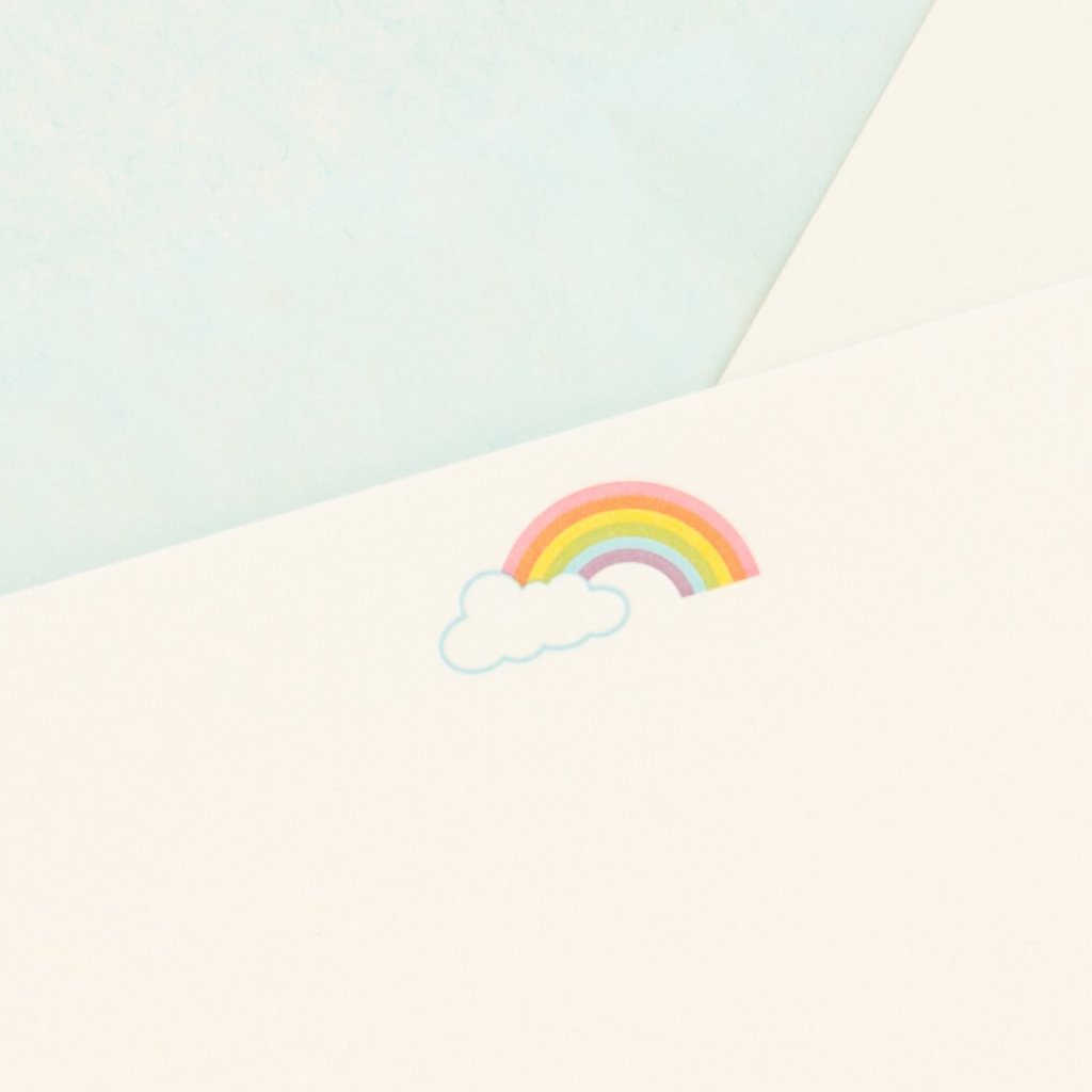 A beautiful rainbow, meticulously printed in three colours. A stationery set full of joy and happiness.