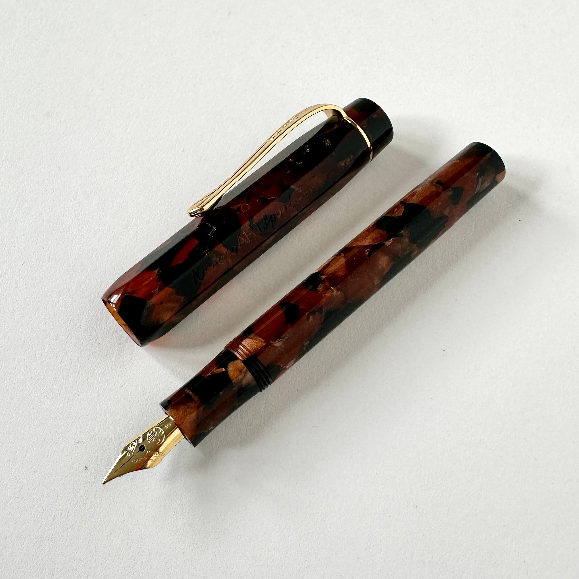 As individual as art – no two writing instruments in the Kaweco ART Sport series are alike. The Kaweco ART Sport is made using an elaborate process in which, high-quality acrylic rods are cast in outstanding colour combinations and structures. This creates unique patterns and colour combinations. Each pen is also polished by hand to high gloss. The permanently mounted clip allows the fountain pen to be carried securely with you or fixed to the writing surface. The exciting history of the Kaweco Sport dates back to 1911. The pocket fountain pen only measures 10.5 cm when closed. With the cap attached, it extends to an average size of 13 cm.