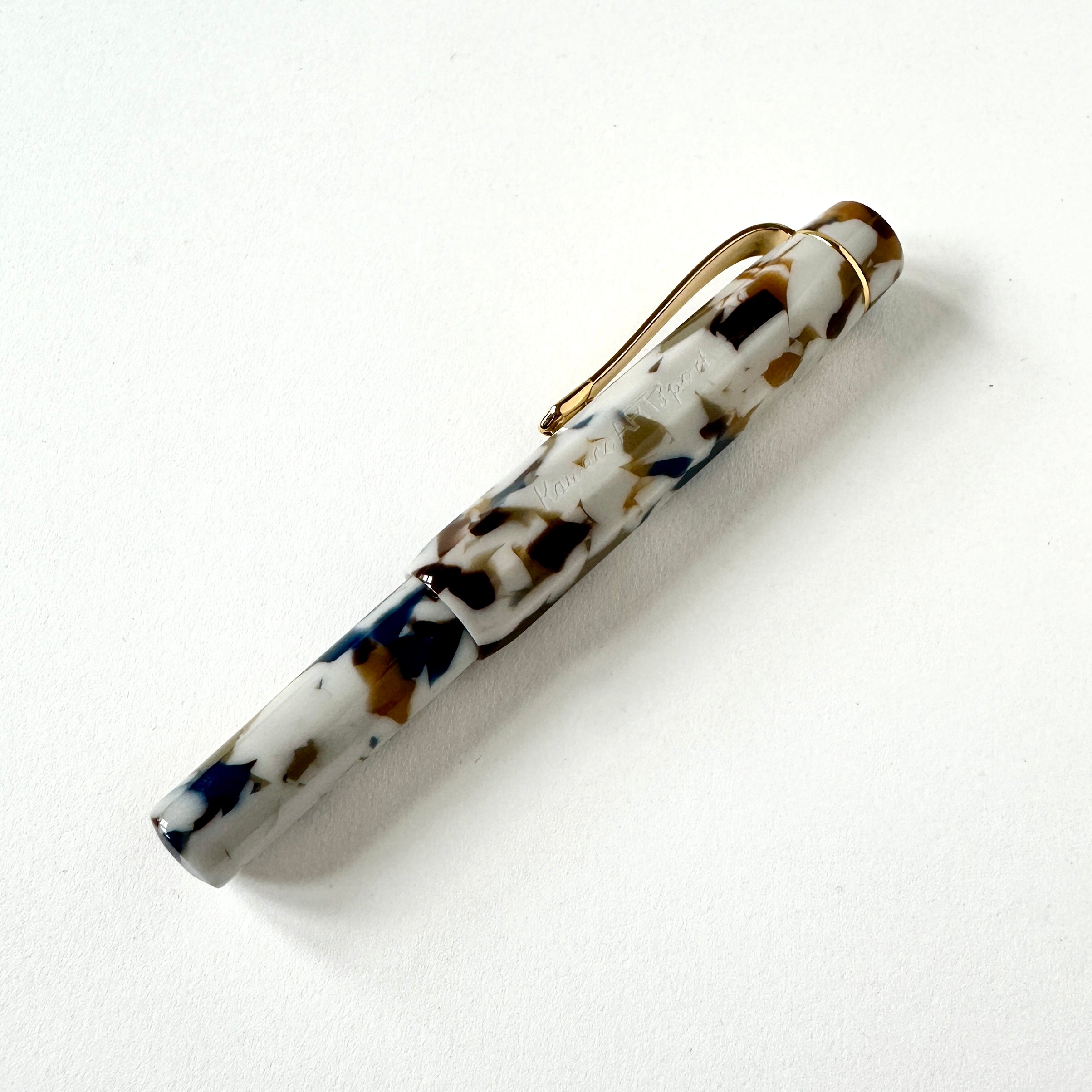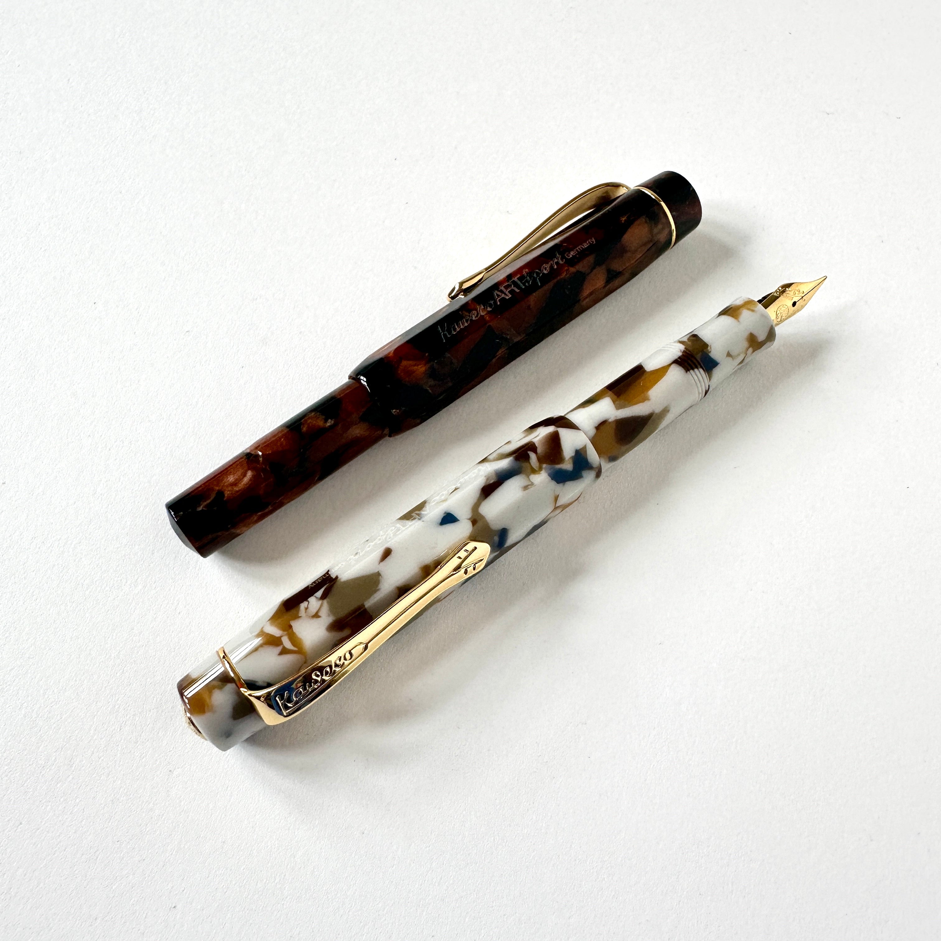 A fountain pen full of personality and exciting mosaics–the Kaweco Art Sport enchants with colourful mosaic-inlays similar to the eponymous traditional Terrazzo flooring. In contrast to the crème-coloured basic material, the play of colours of the writing instrument stands out. The glossy, highly polished surface of the high-quality acrylic makes the fountain pen to a luxury eye-catcher. Unique textures arise through the artfully pouring process.