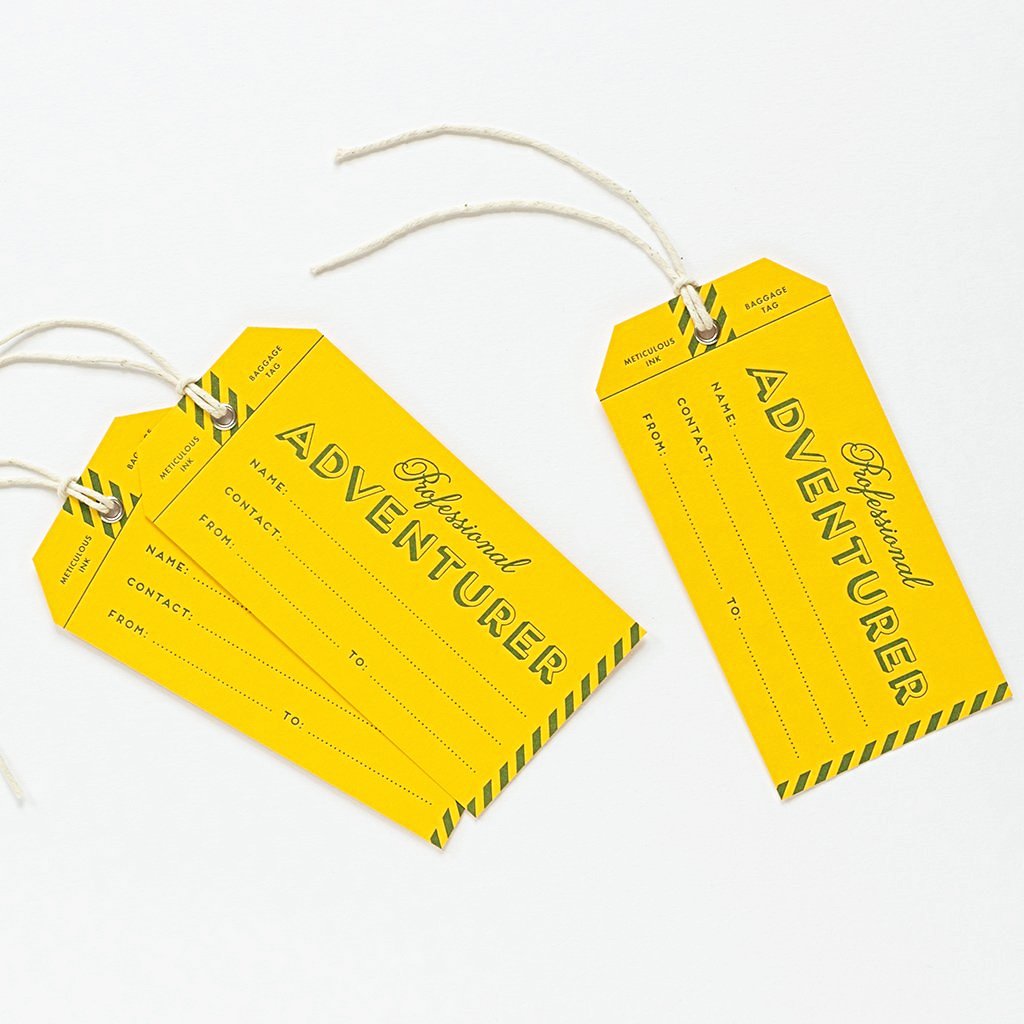 Individually eyeletted, and lovingly letterpress printed on our 1960's Heidelberg, these beautifully retro luggage tags are perfect for your travelling needs and any fellow adventurers! Pack of 3.