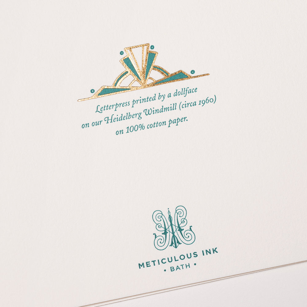All our cards are illustrated, designed and printed in house at Meticulous Ink, Bath, UK. Each card has been lovingly letterpress and foil printed on a 1960s Heidelberg Windmill.