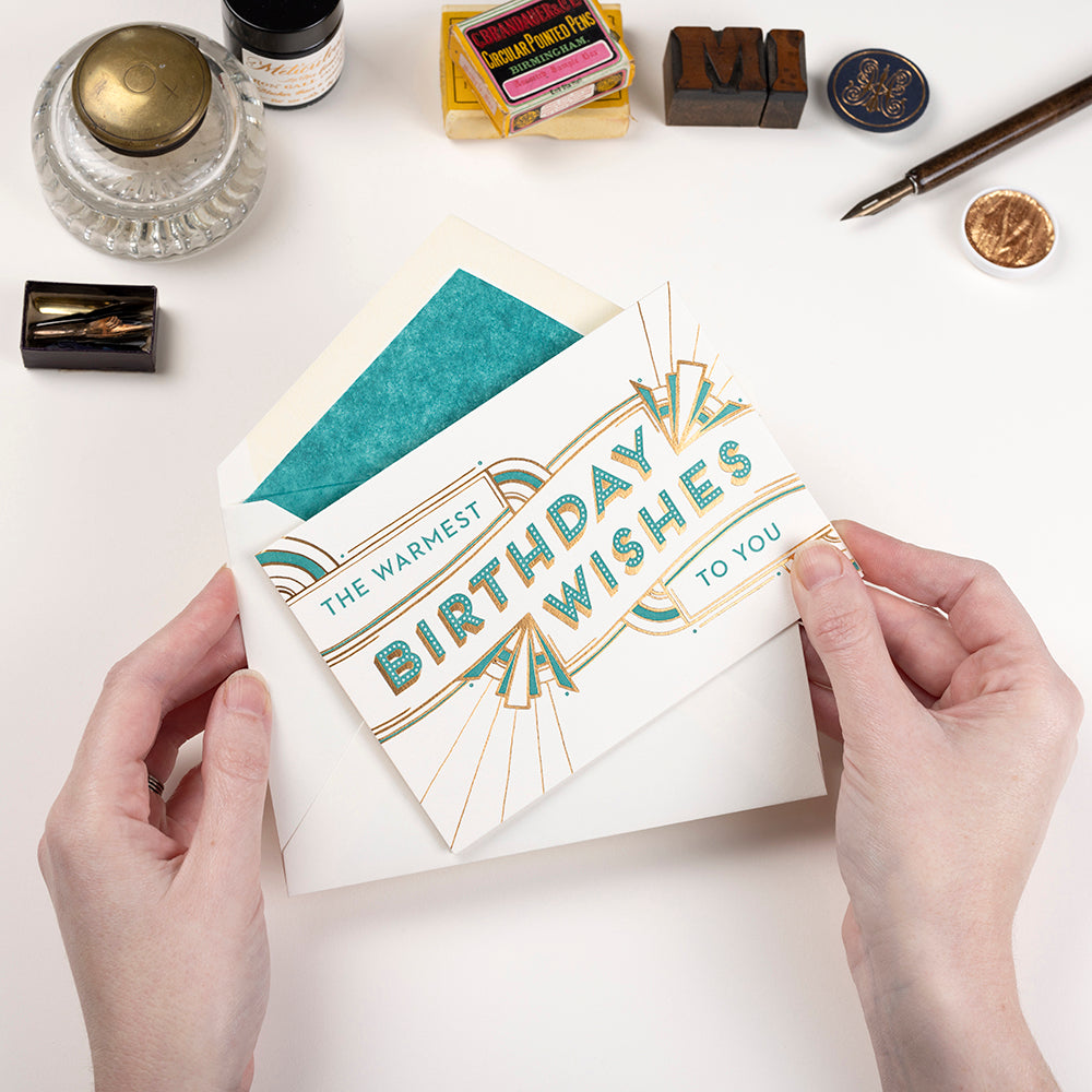 Deco Birthday Wishes Letterpress & Foil Greetings Card