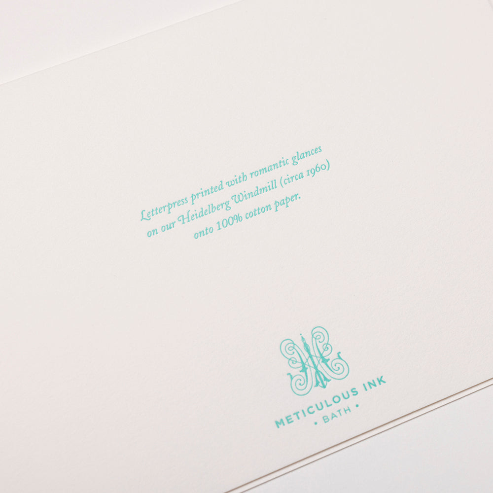 All our cards are illustrated, designed and printed in house at Meticulous Ink, Bath, UK. Each card has been lovingly letterpress printed and foiled on our 1960s Heidelberg Windmill printing presses.