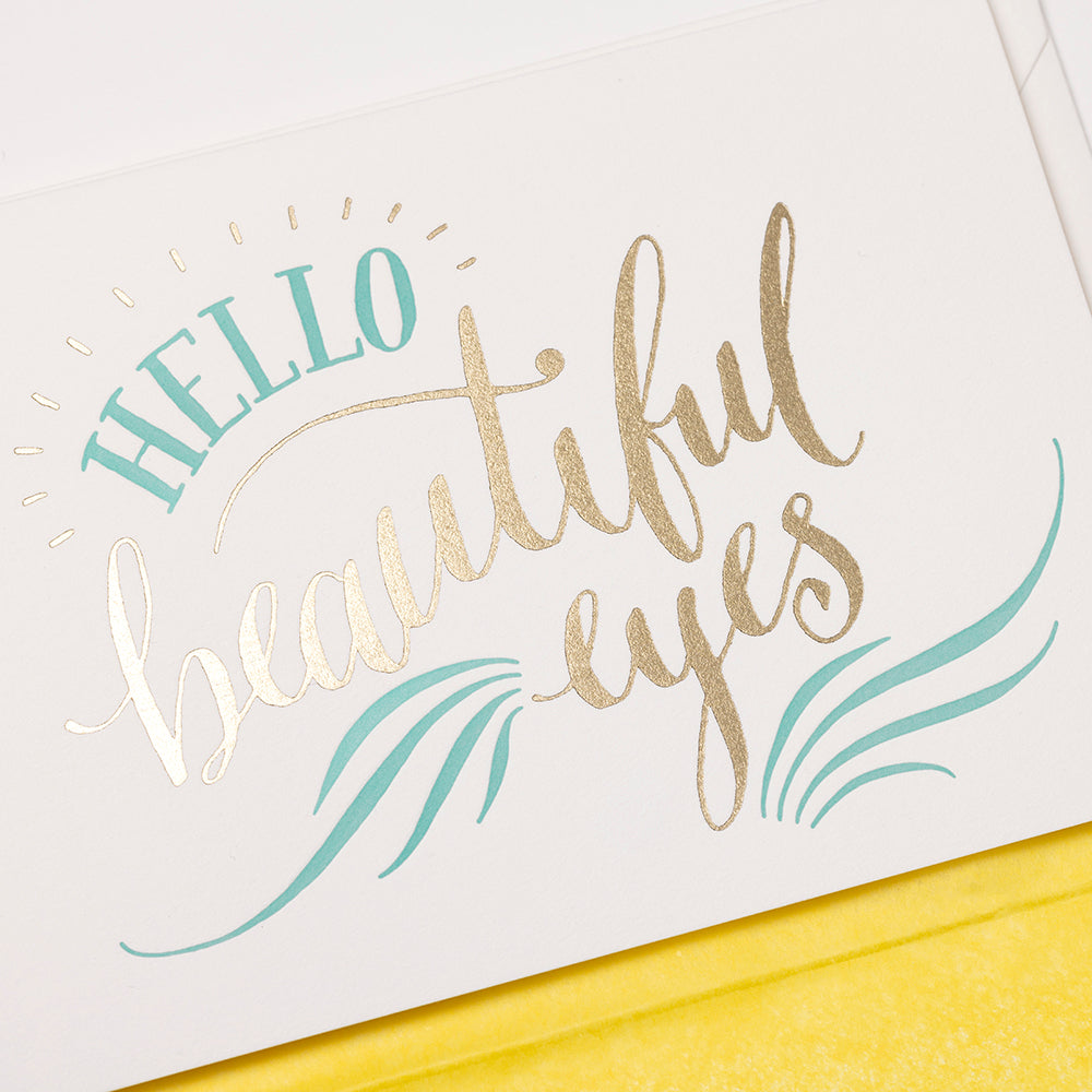 Only for those with the most beautiful eyes - a foil and bright turquoise letterpress print card to show your admiration.