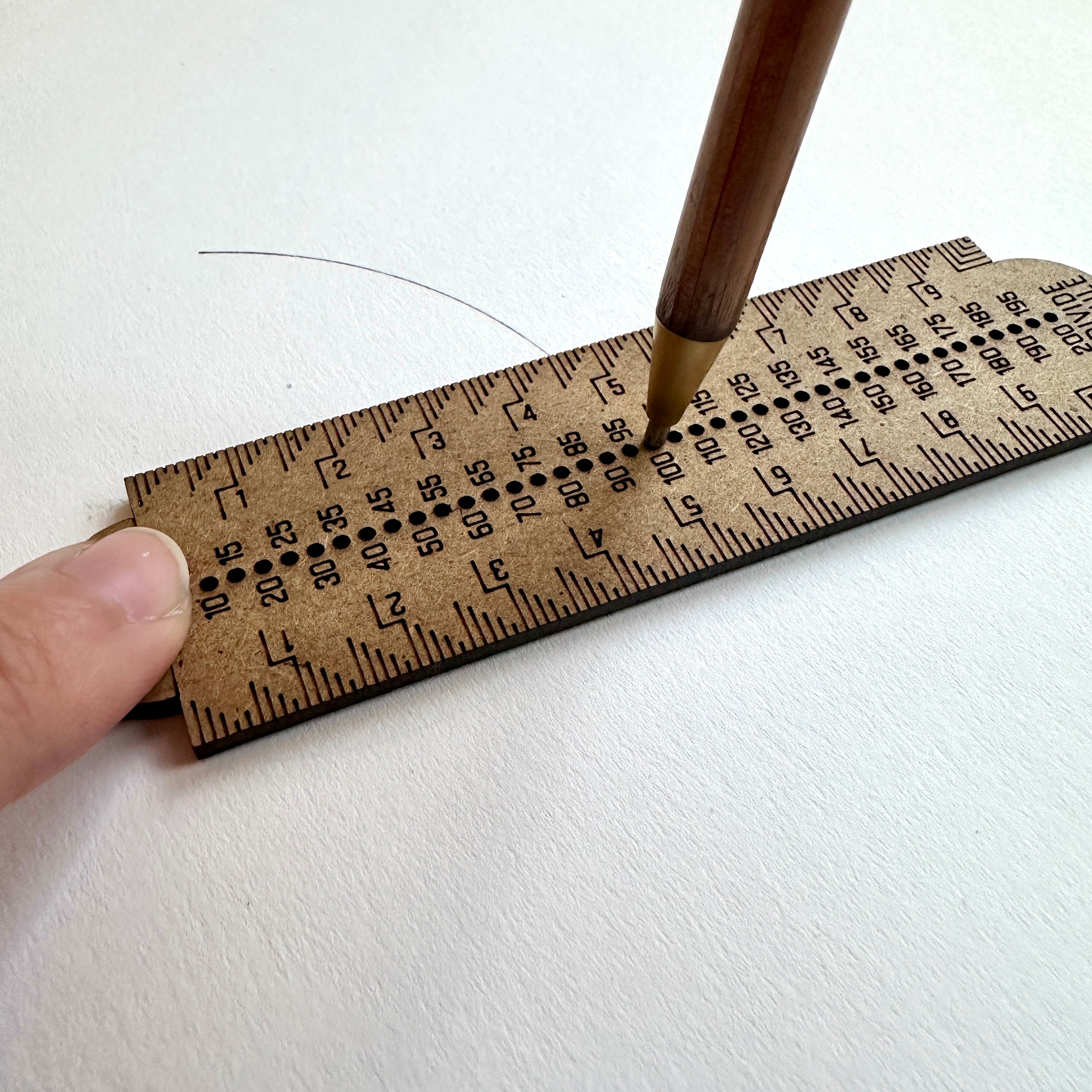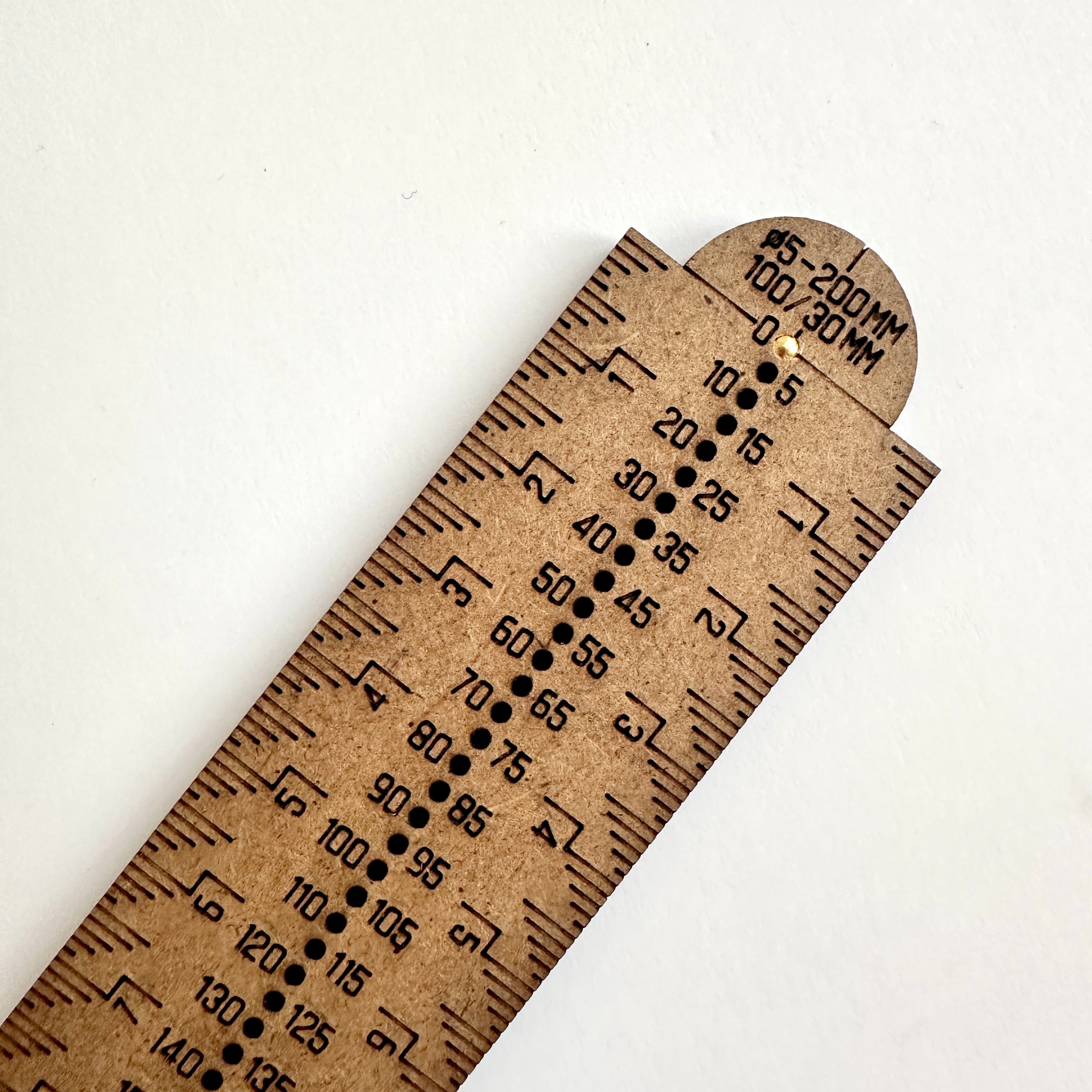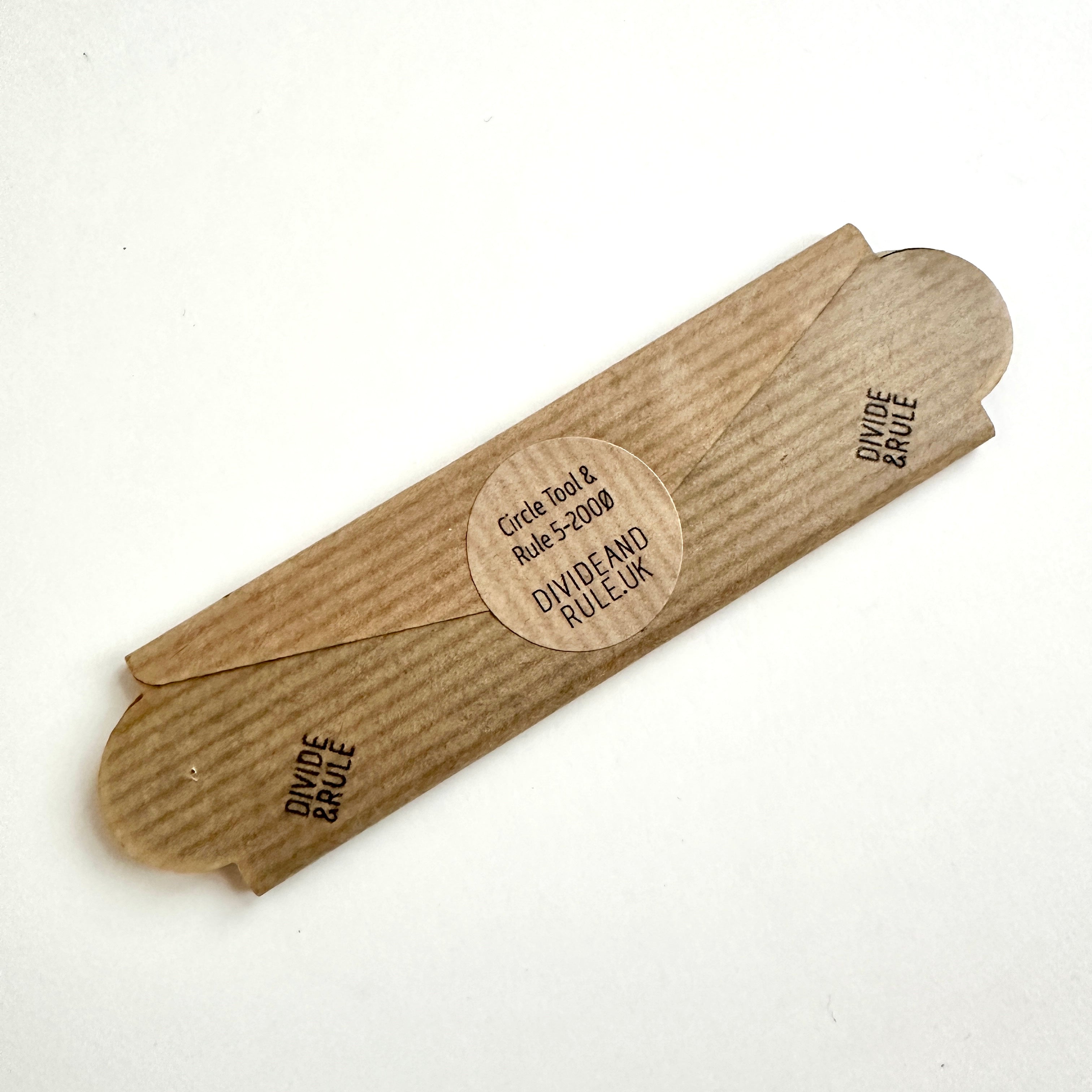 The Circle Tool & Rule 5-200 is a super clever combination circle drawing tool and ruler. Able to draw circles from 5mm to 200mm in diameter at 5mm increments. The centre point has a small brass pin with horizontal and vertical guide lines for easy locating in place.