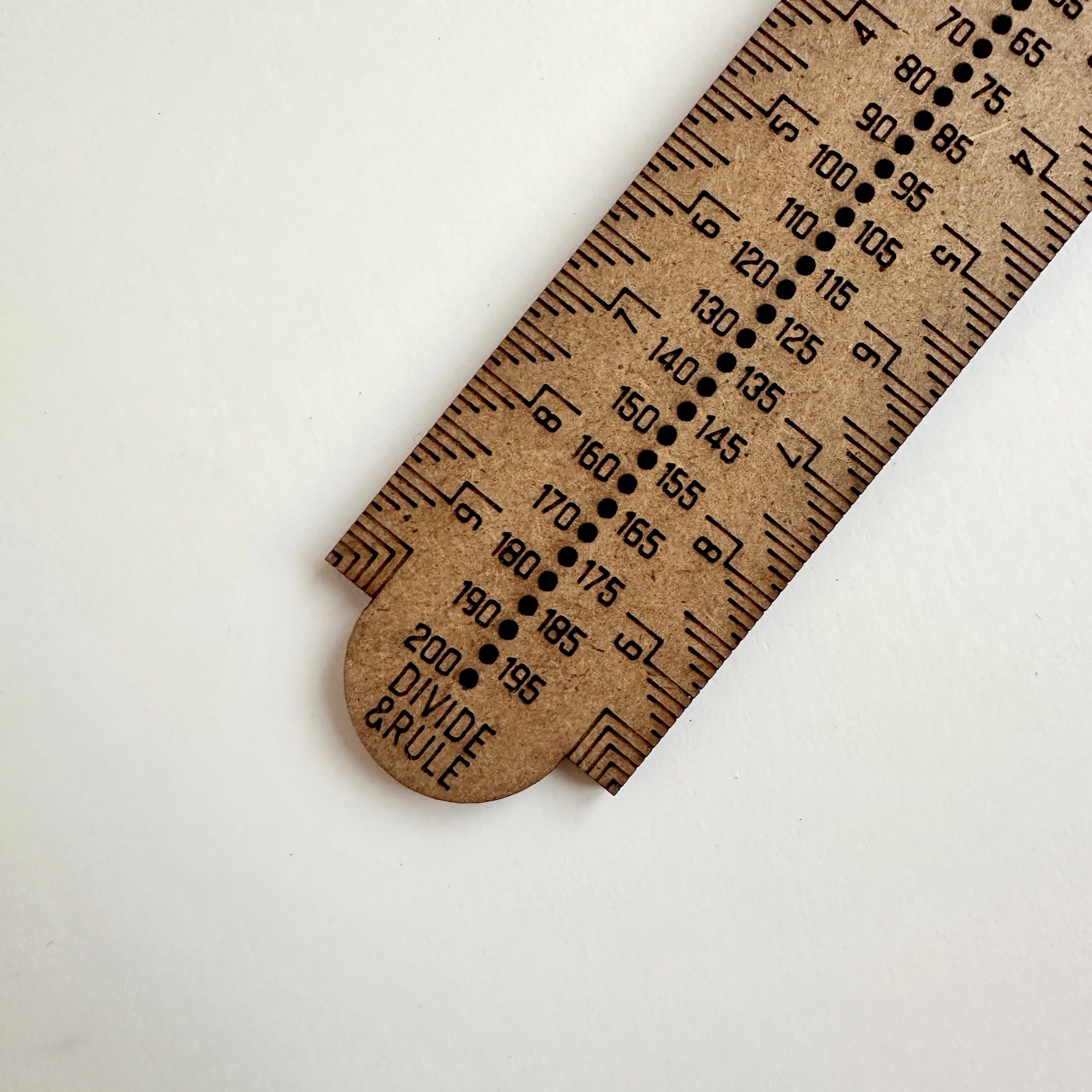 The two sides have 100mm rules with incremental millimetre marks to both long edges, allowing for the rule to be used to measure from the left or right. The back of the long edge of the rule has a bevel to minimise ink smudging.