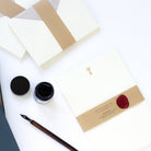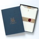 Each box set contains 15 printed A5 sheets, letterpress printed in pale grey ink and copper foiled onto our very own 160gsm, 100% cotton paper. With 15 light grey tissue lined C6 envelopes, and 5 plain continuation sheets, all presented in a beautiful box and finished with our wax seal.