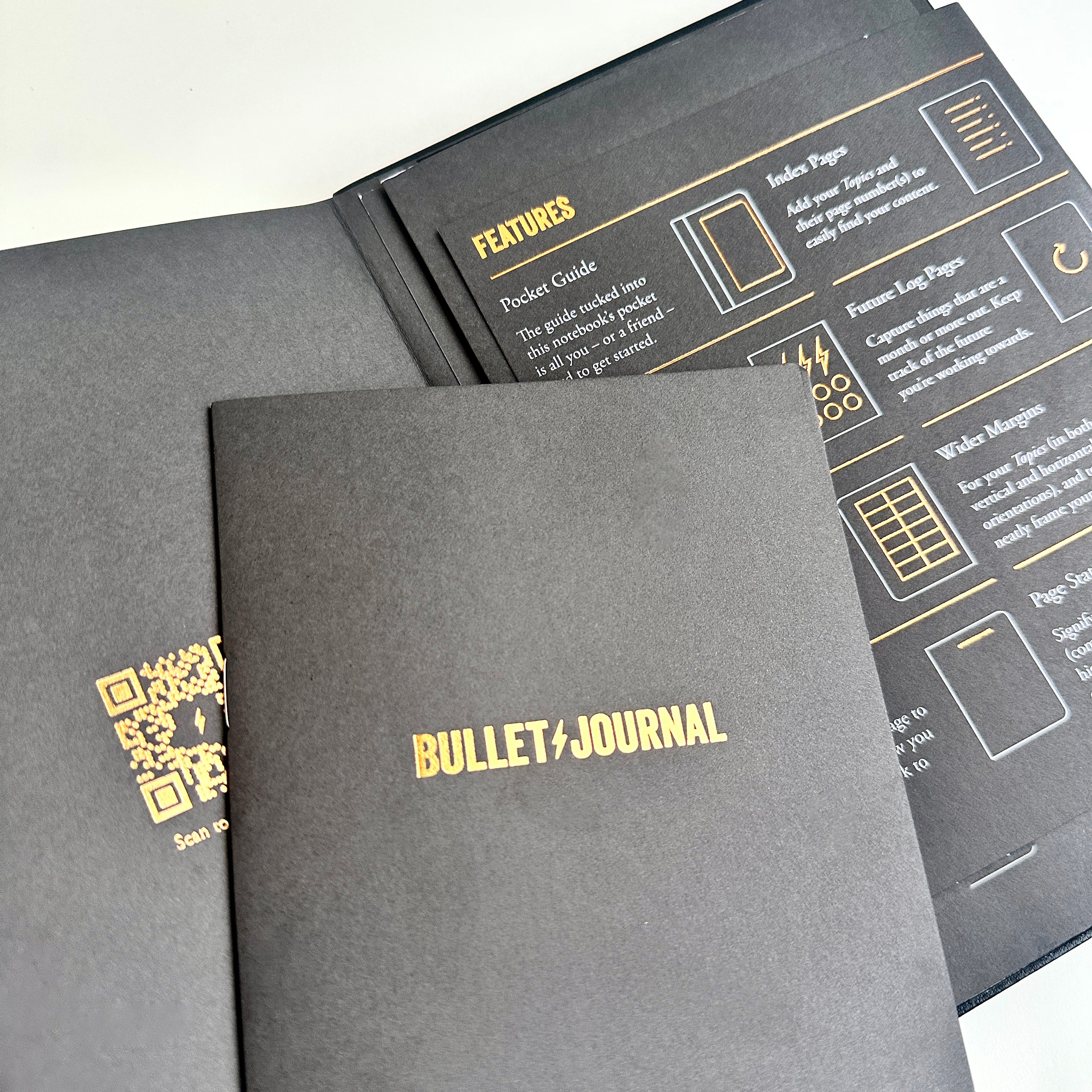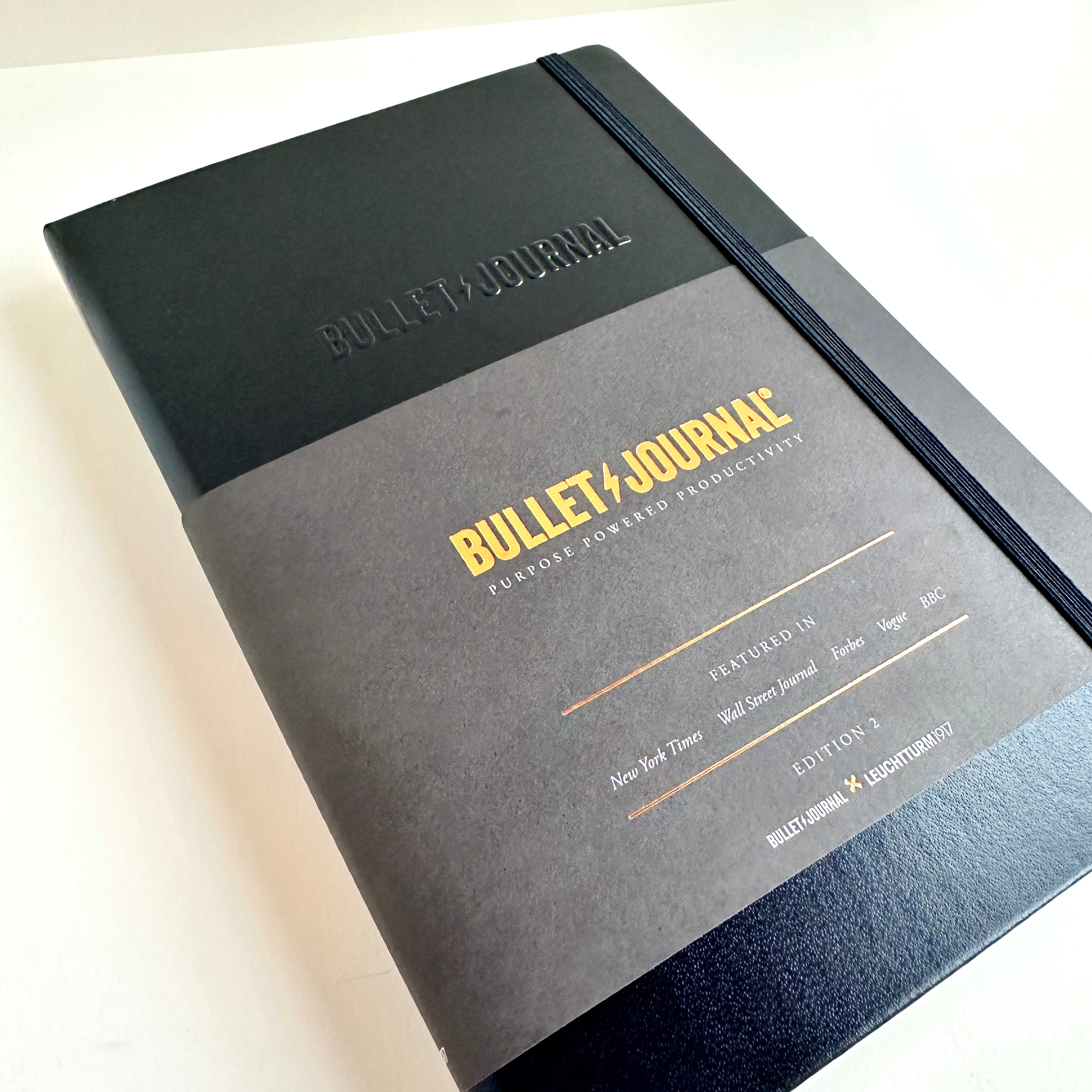 - Stylish classic black cover with blind embossed "Bullet Journal"