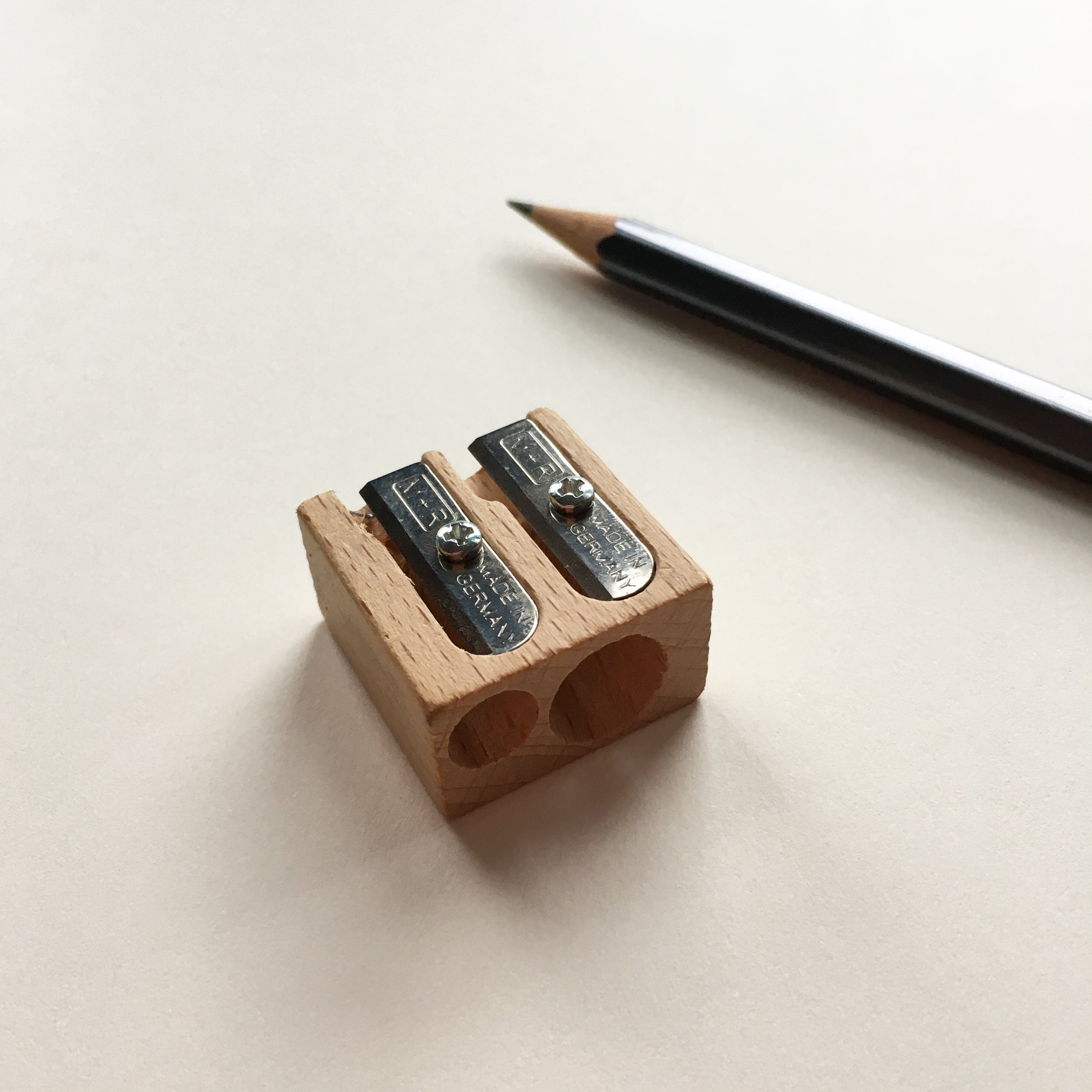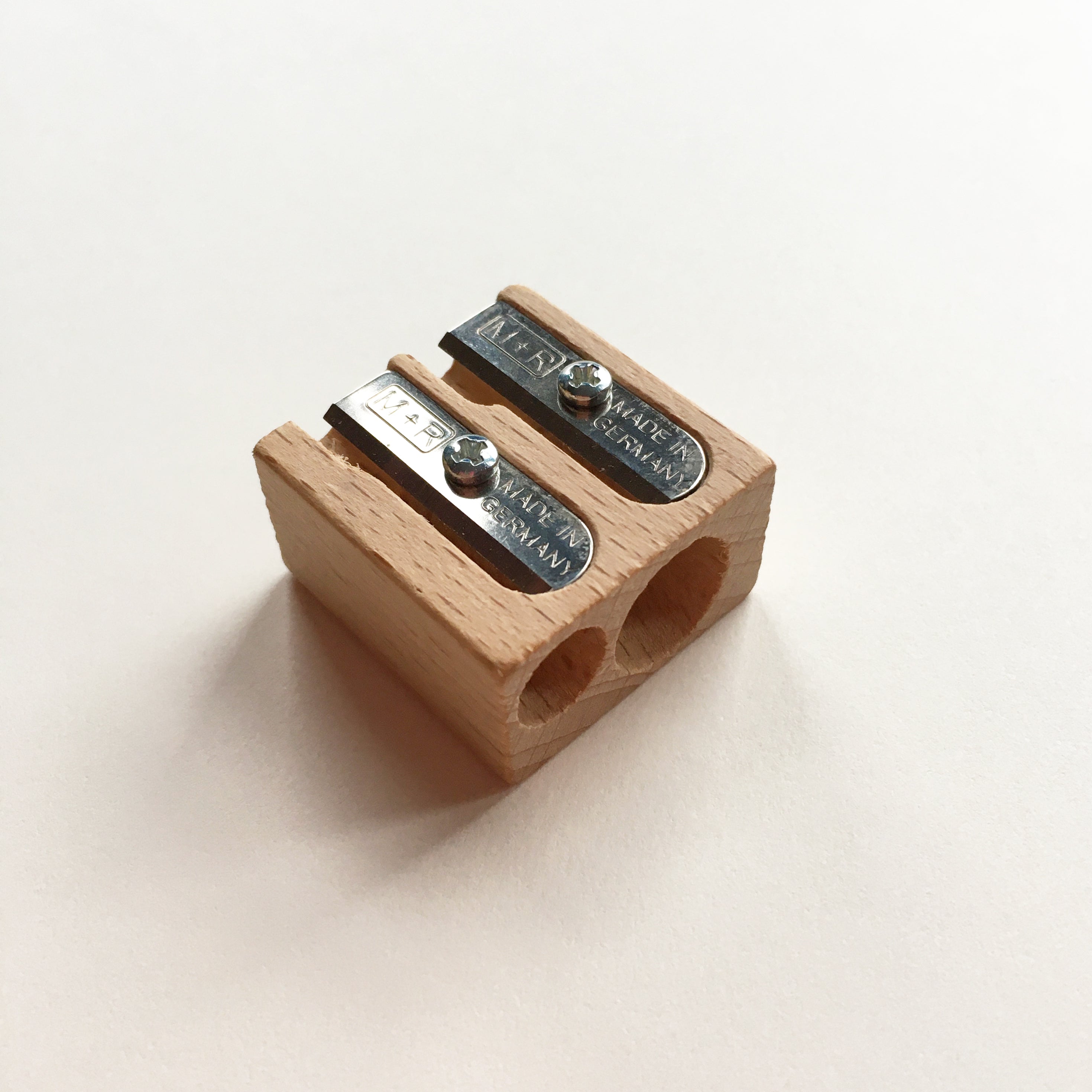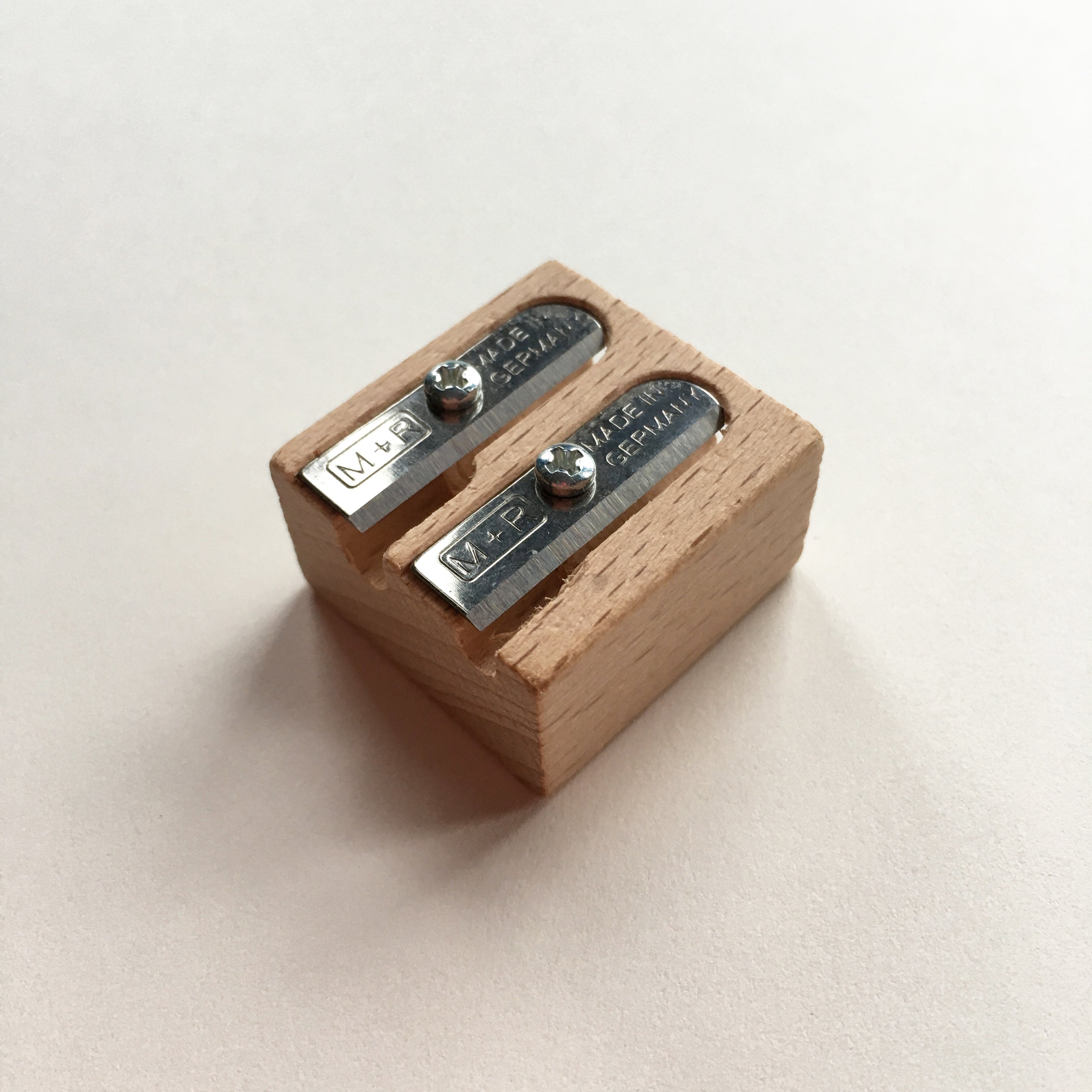 This wooden rectangular double hole sharpener from Mobius + Ruppert is a lightweight, everyday sharpener perfect for both standard and jumbo pencils, such as the Magic Pencil. Made in Germany.