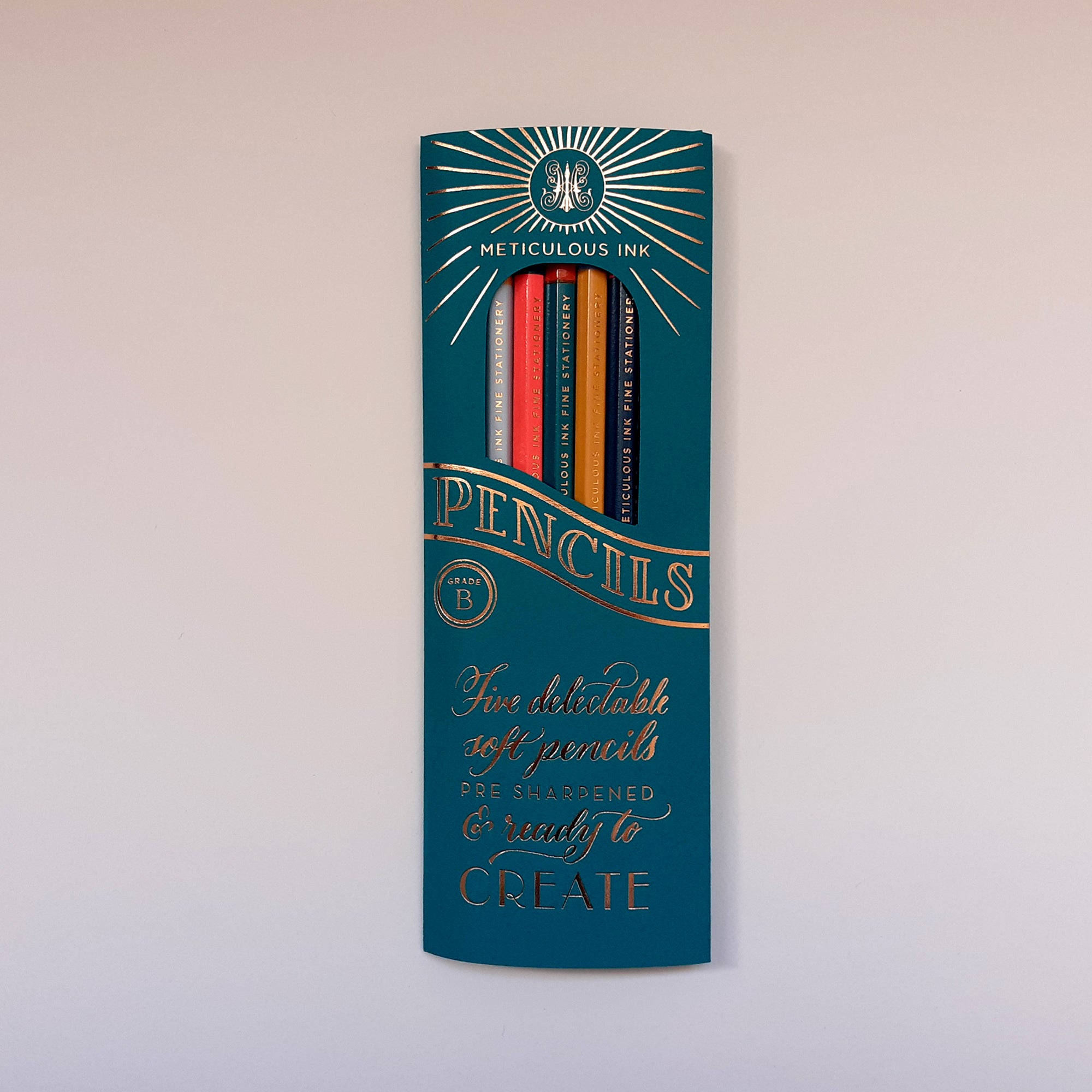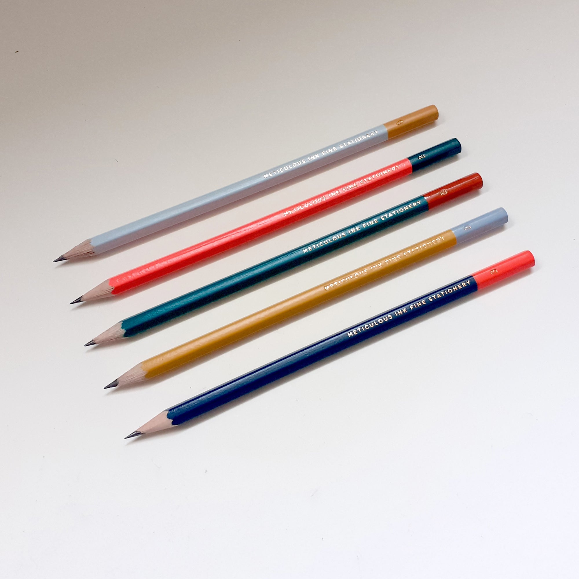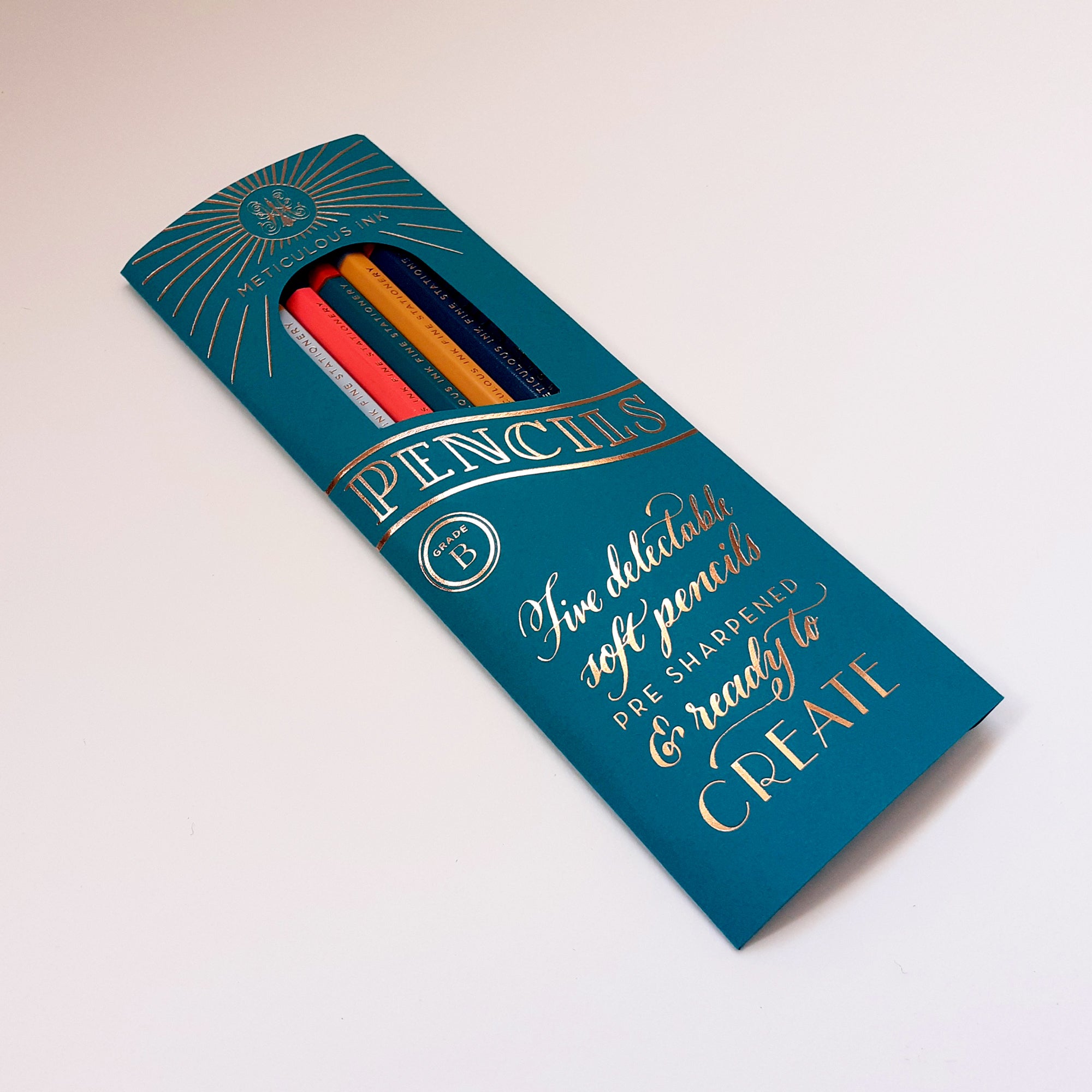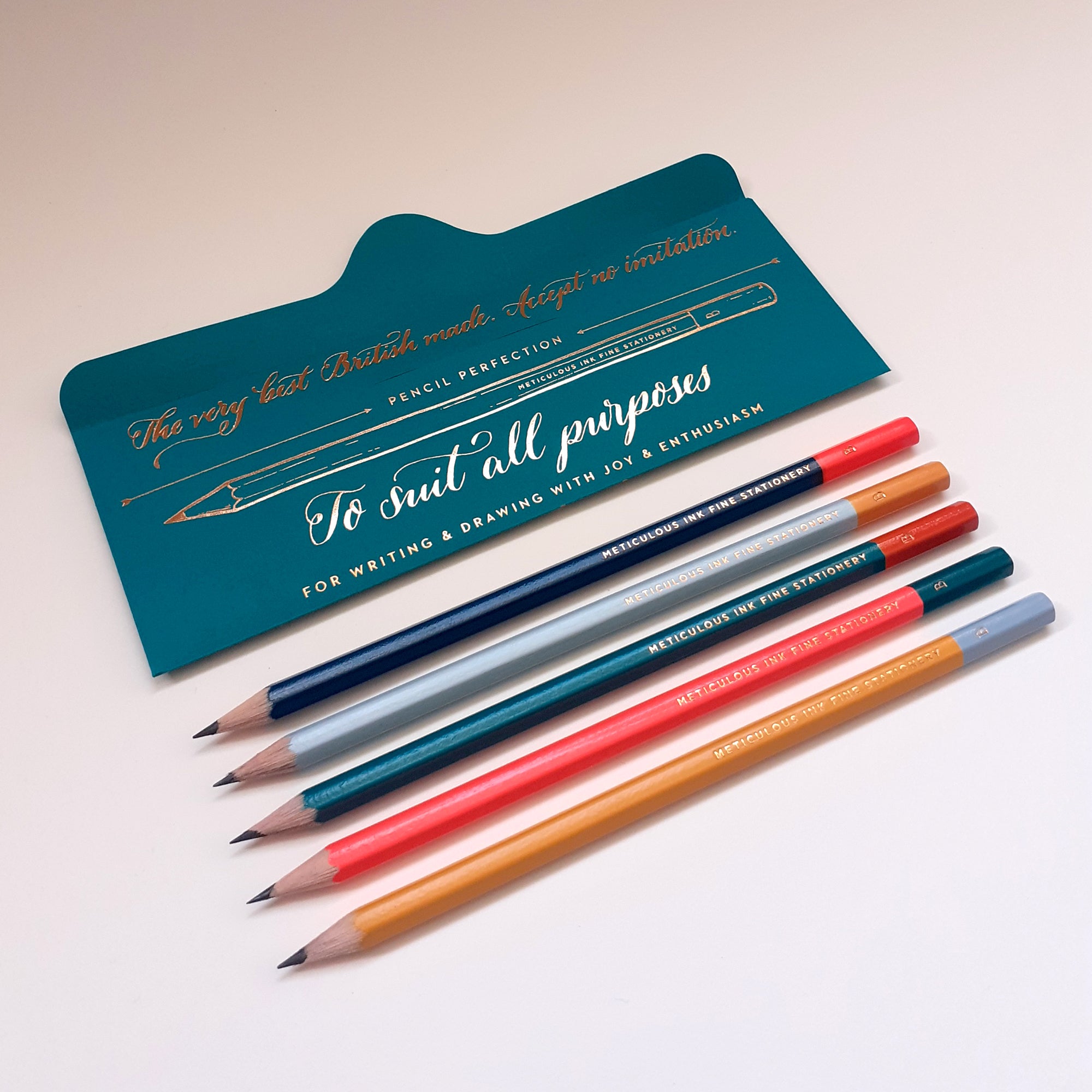 Available in 5 colourways, choose from a single pencil or a pack of five featuring all the barrel colours, housed in meticulous paper packaging which has been foil printed, die cut and hand folded at our shop in Bath.