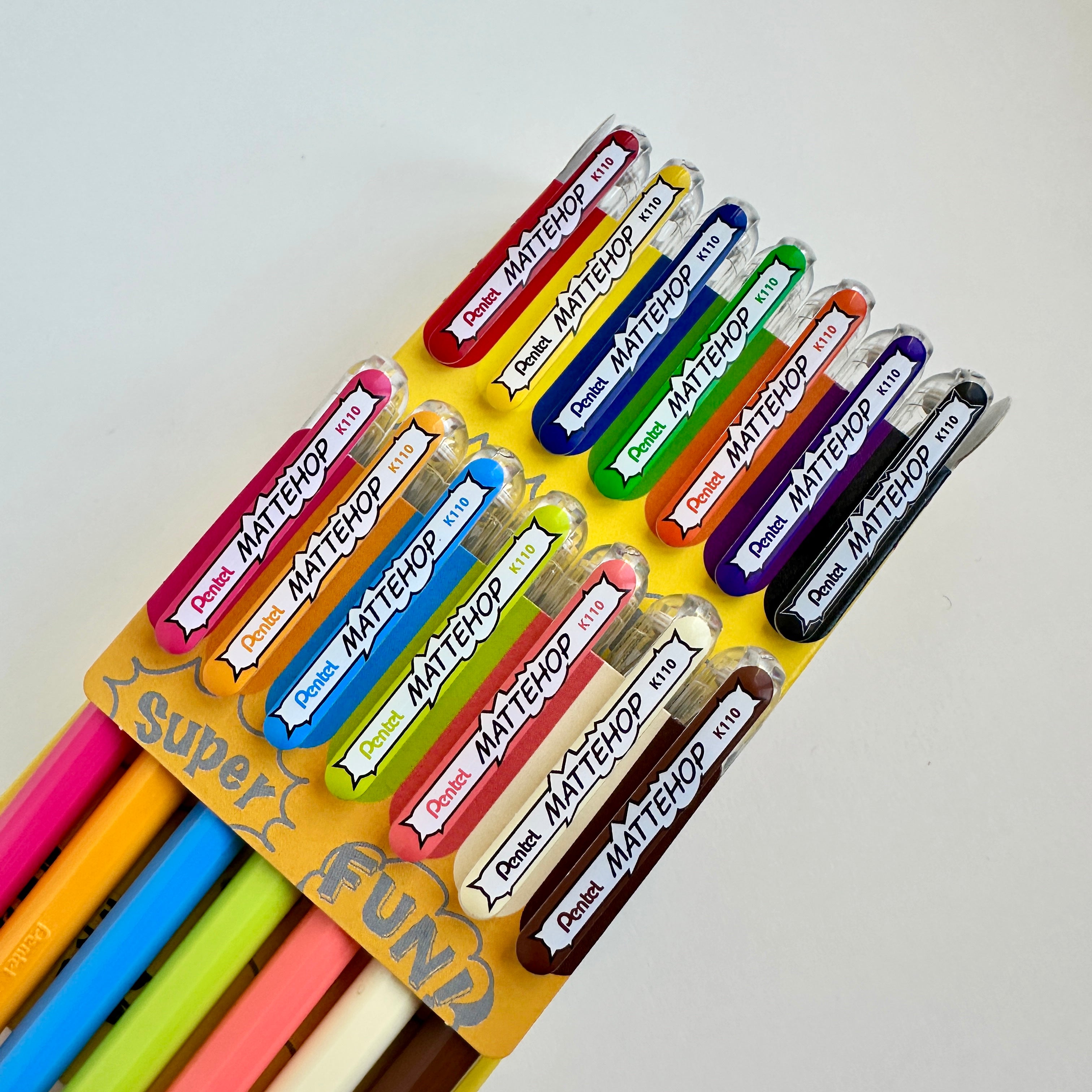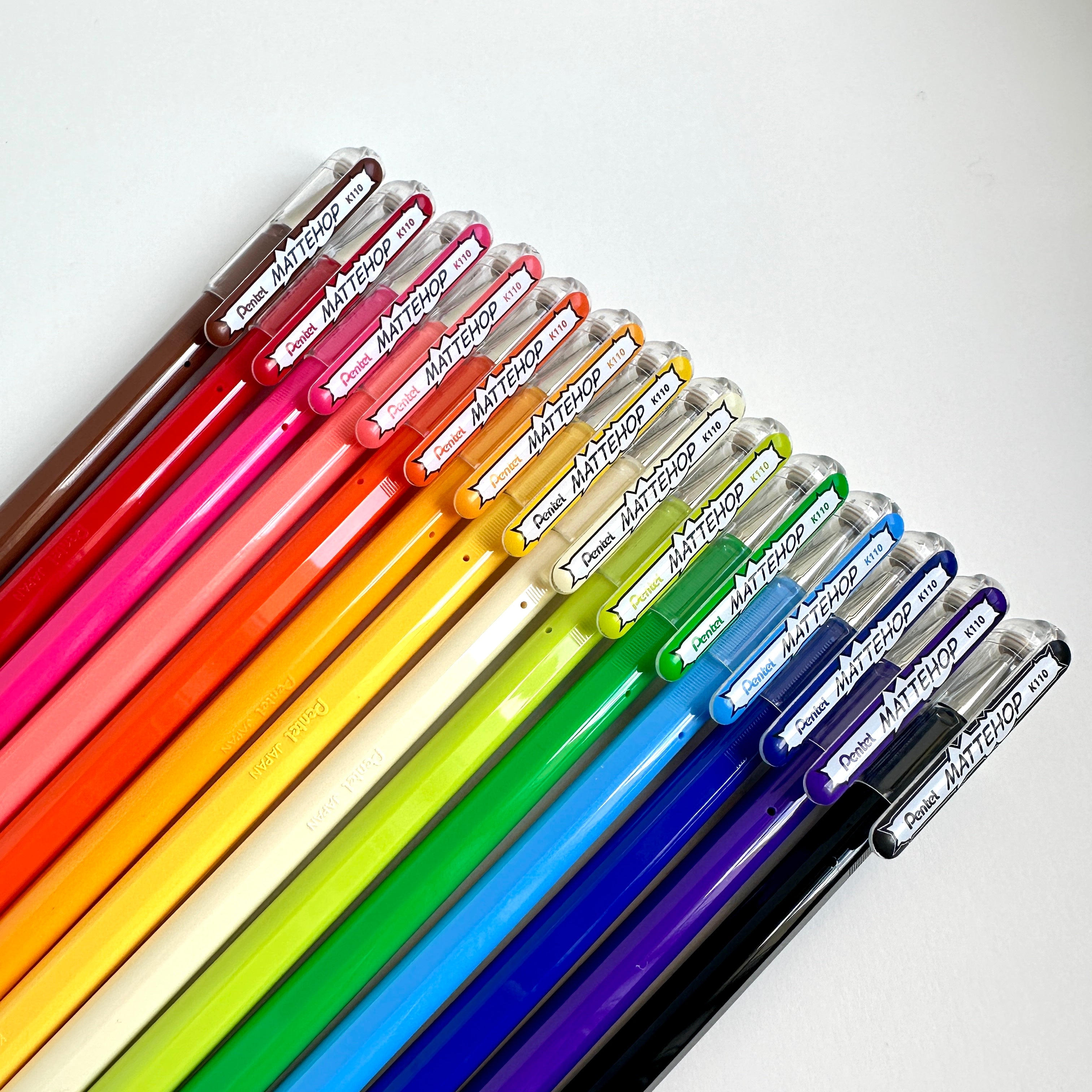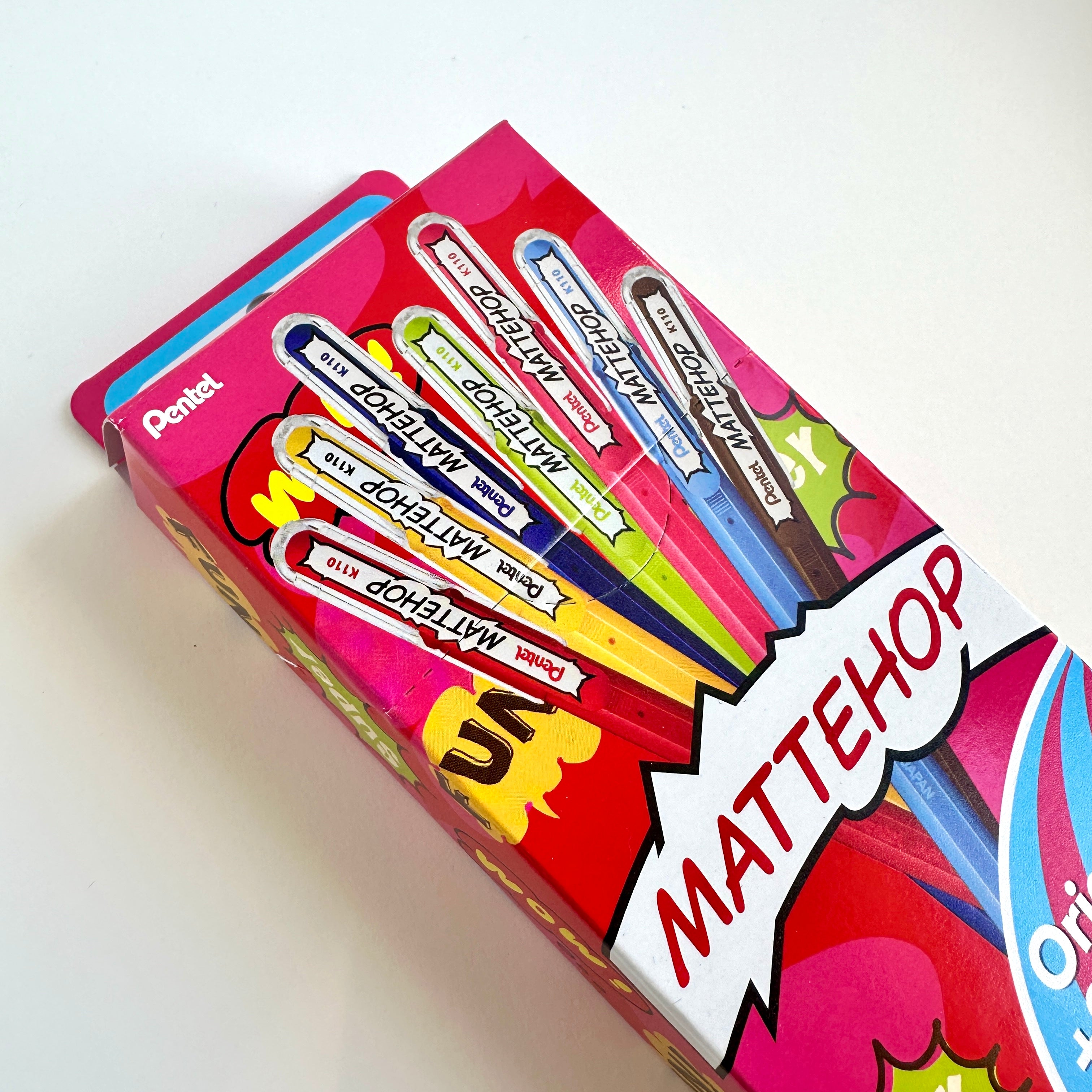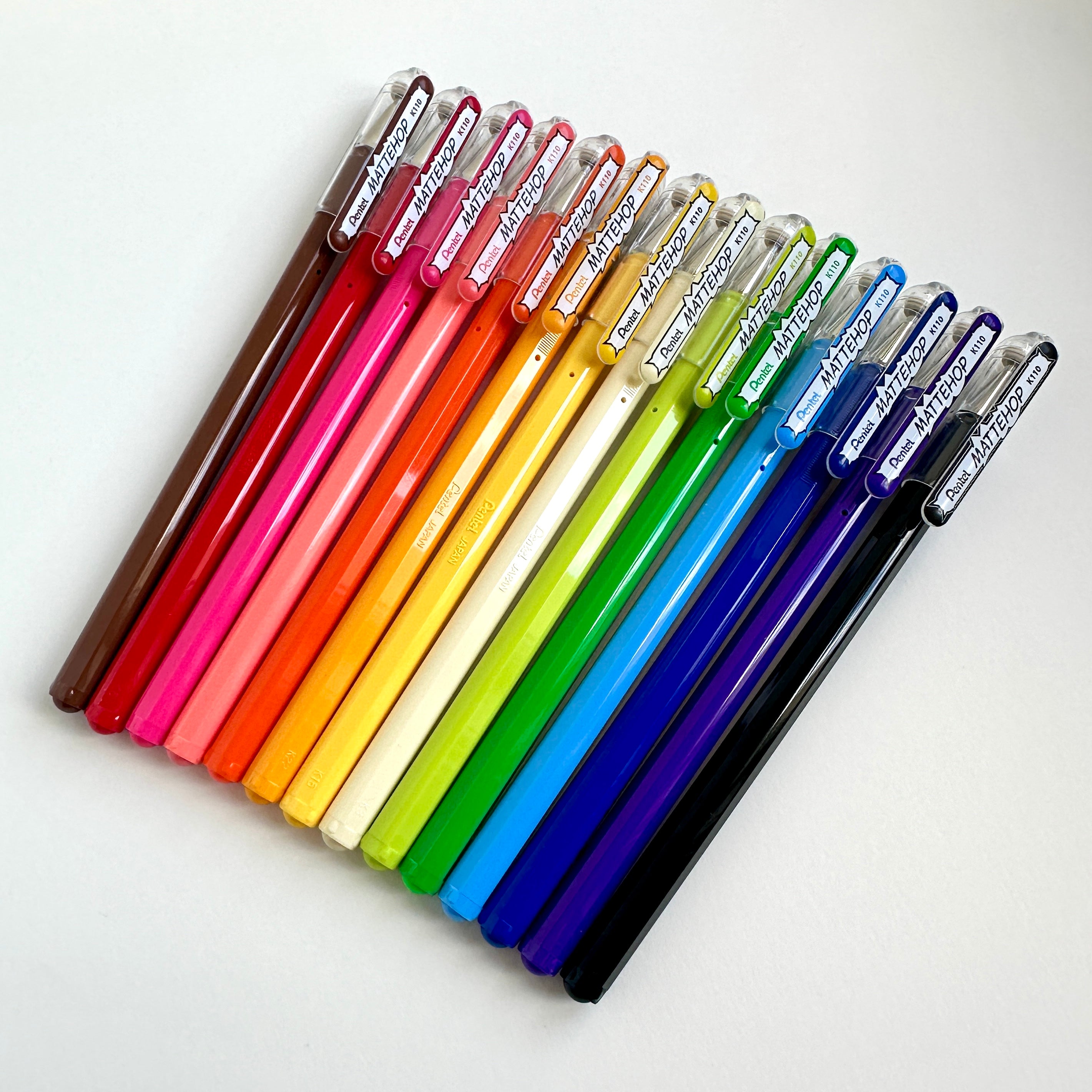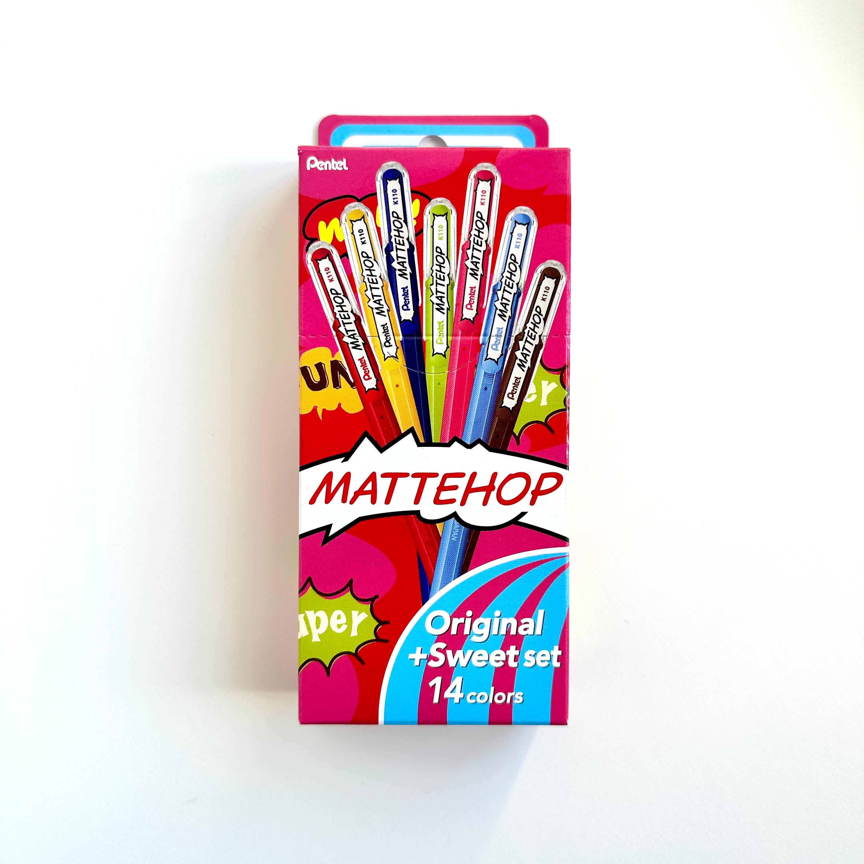 Mattehop gel pens are a smooth writing pen with incredibly opaque ink, meaning you can write freely on pale or dark coloured card with ease. The pleasingly chunky 1mm nib means excellent coverage, even on coated paper. This set includes 14 incredible colours, presented in a bright box.