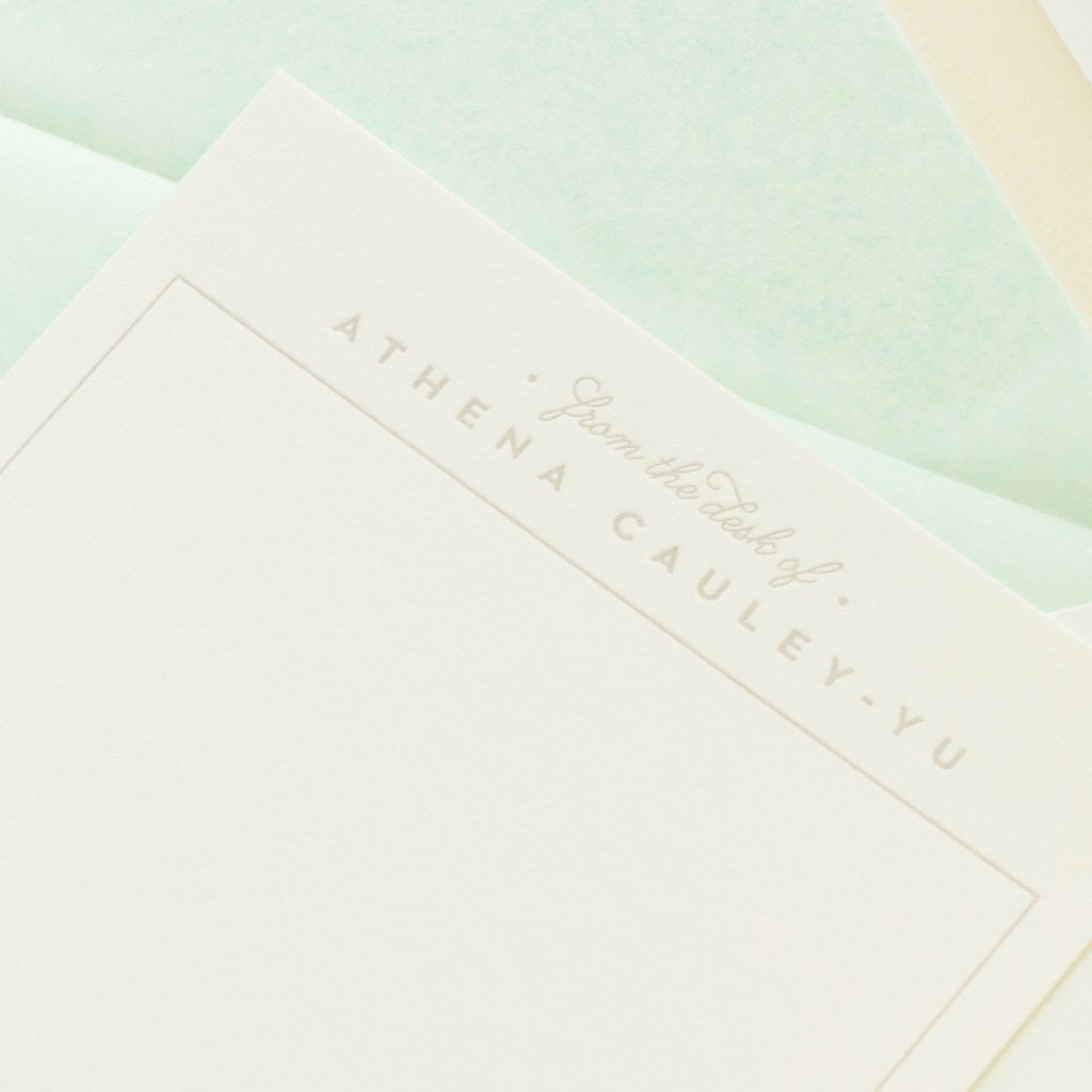 This set includes 50 cards of the design shown with matching hand tissue lined envelopes. Your beautiful cards are letterpress printed at our store in Bath onto 300gsm wove card in a soft white colour.