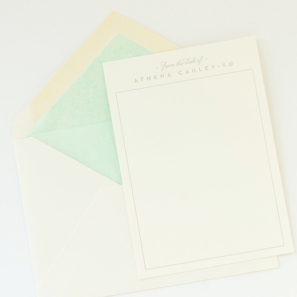 Your very own personal stationery. Inspired by the Wes Anderson film, Moonrise Kingdom, this design features “From the desk of” across the top, with your name, so can be taken with you for posting wherever you are on the planet.