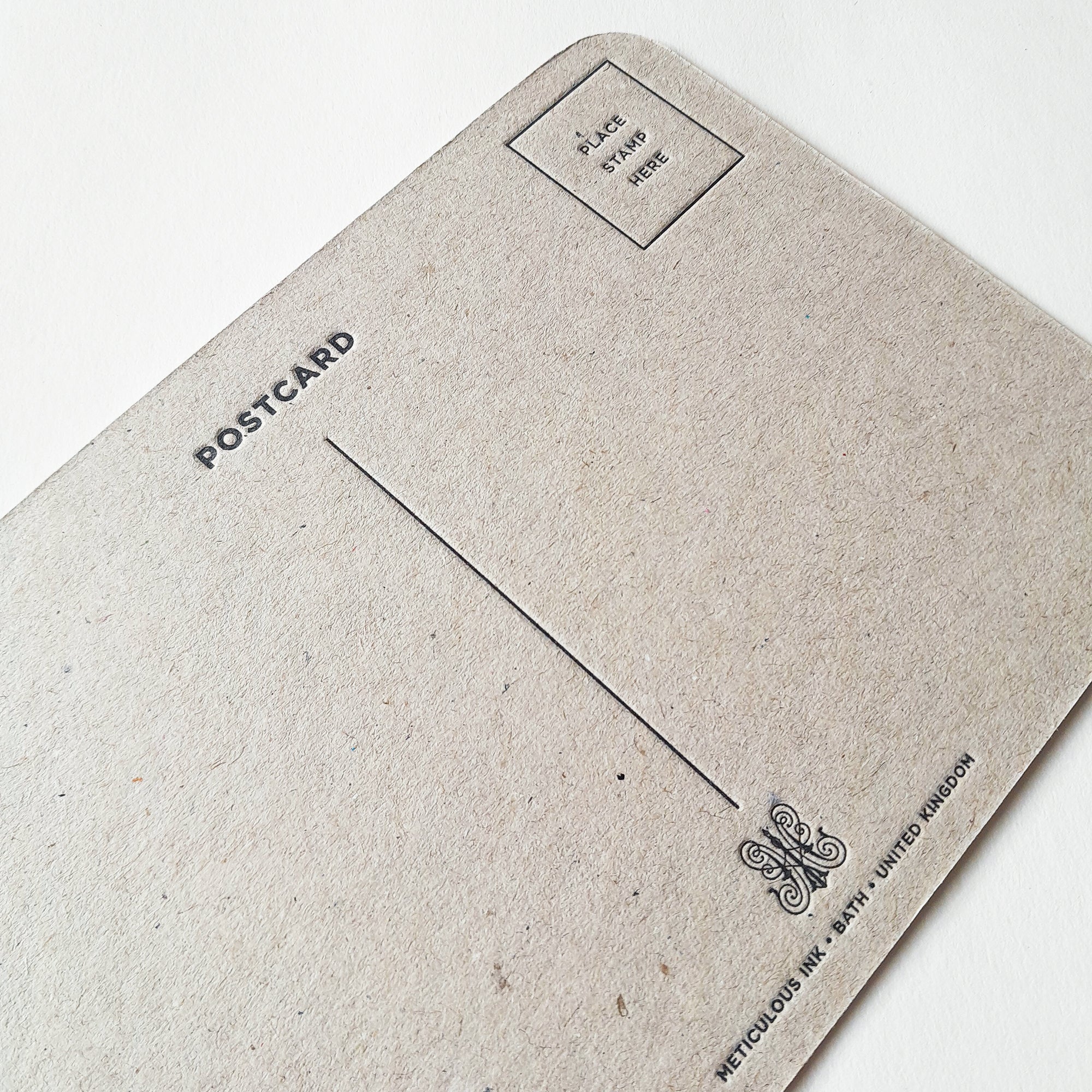 Illustrated and letterpress printed in-house on our beautiful 1960s Original Heidelberg printing presses. The reverse side features a classic postcard layout left blank for your own message.