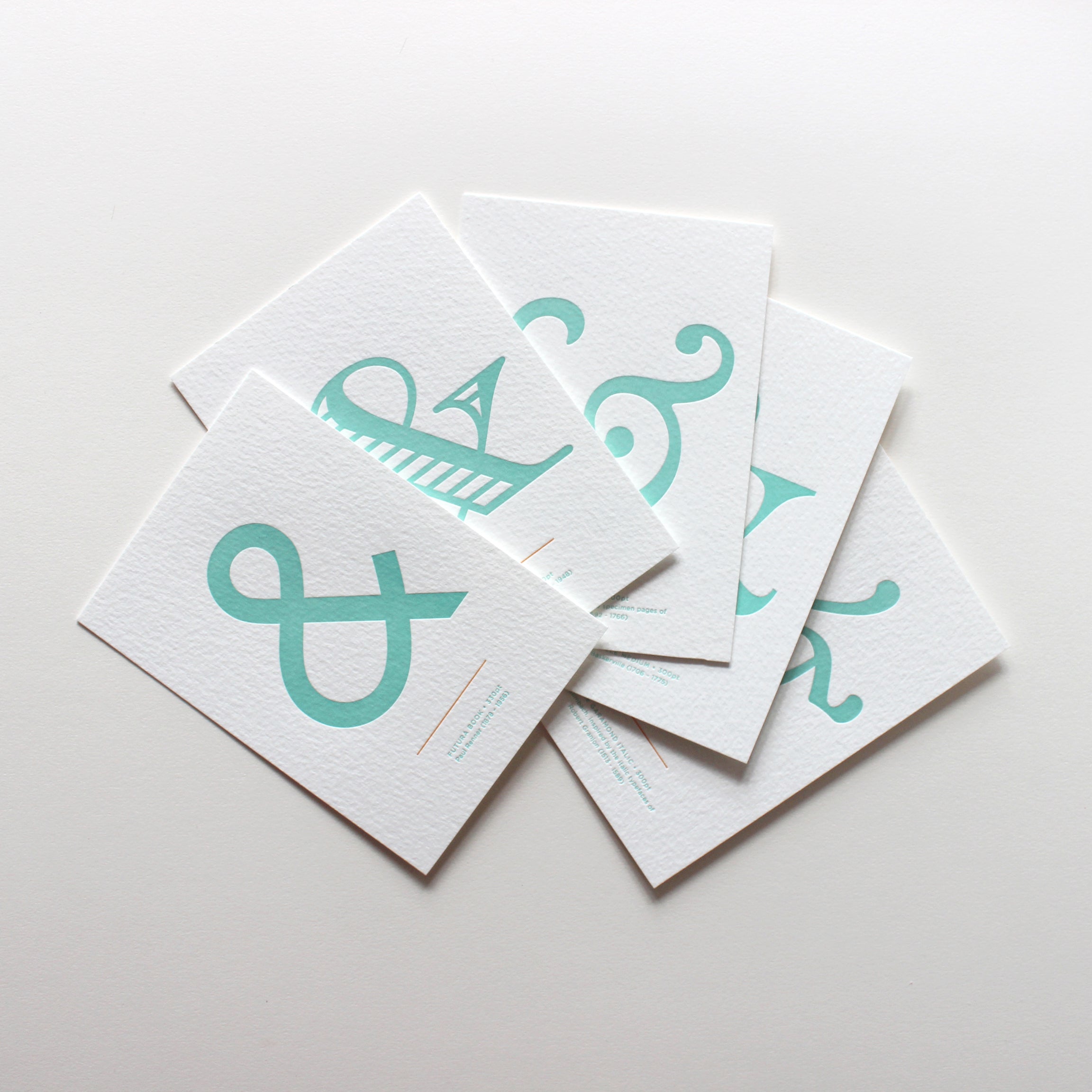 Enjoy the typographical differences of the ampersand with our letterpress printed ampersand A6 postcard featuring a range of typefaces. The reverse side features a classic postcard layout left blank for your own message.