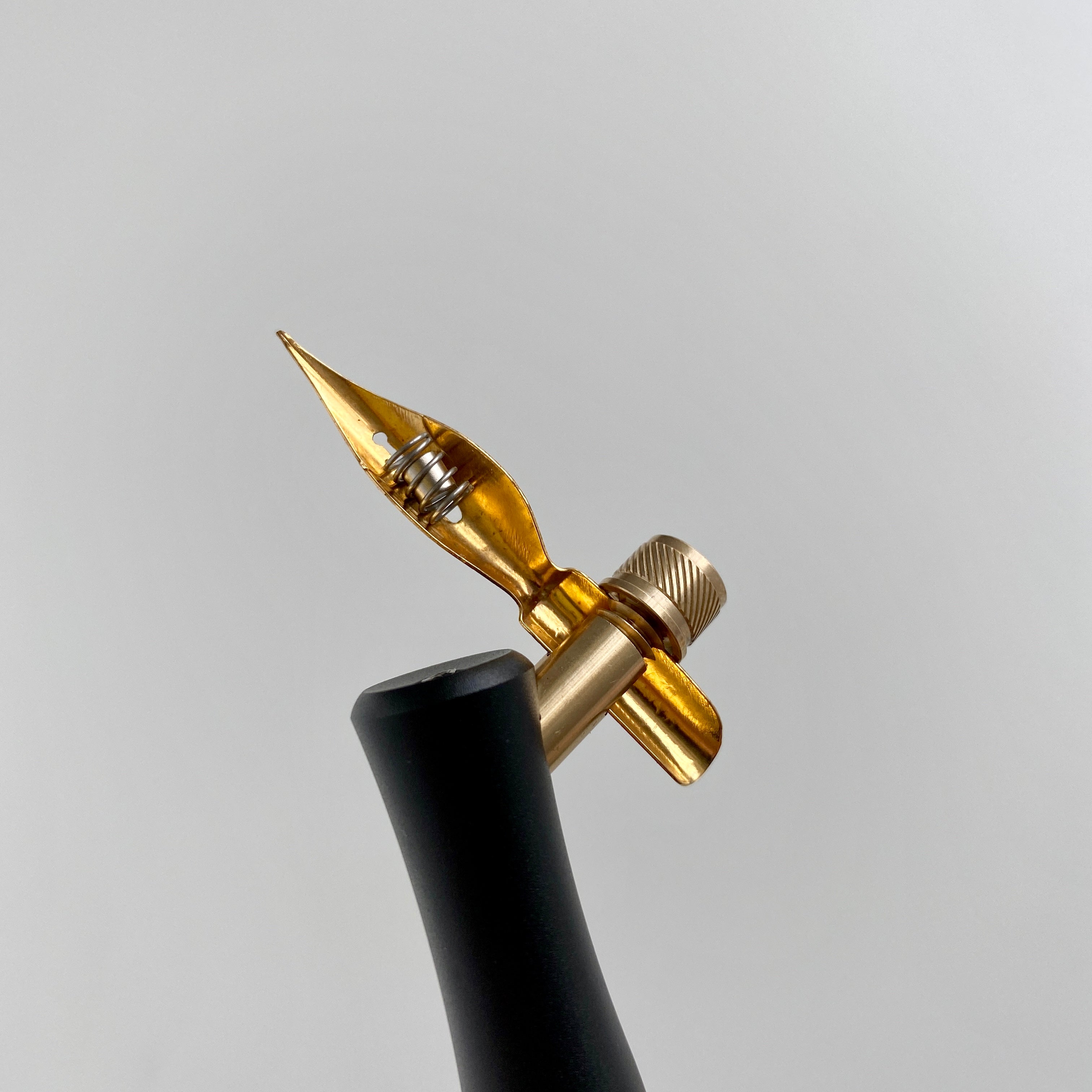 Combining the perfect size spring with a tiny yet powerful neodymium magnet, the One Dip Wonder creates a reusable and removable reservoir on the underside of your calligraphy nib.