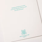 Each single card is letterpress printed in teal and foiled in deep copper onto 300gsm, 100% cotton card. With a burnt orange tissue lined, C6 envelope.