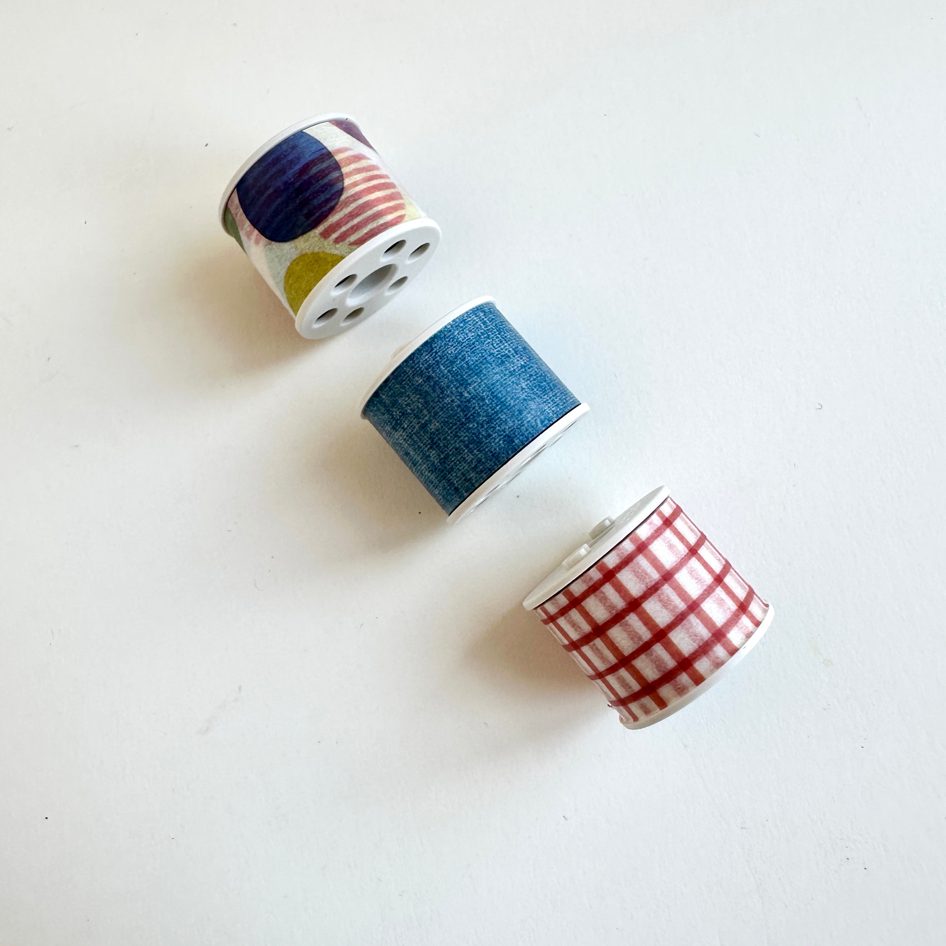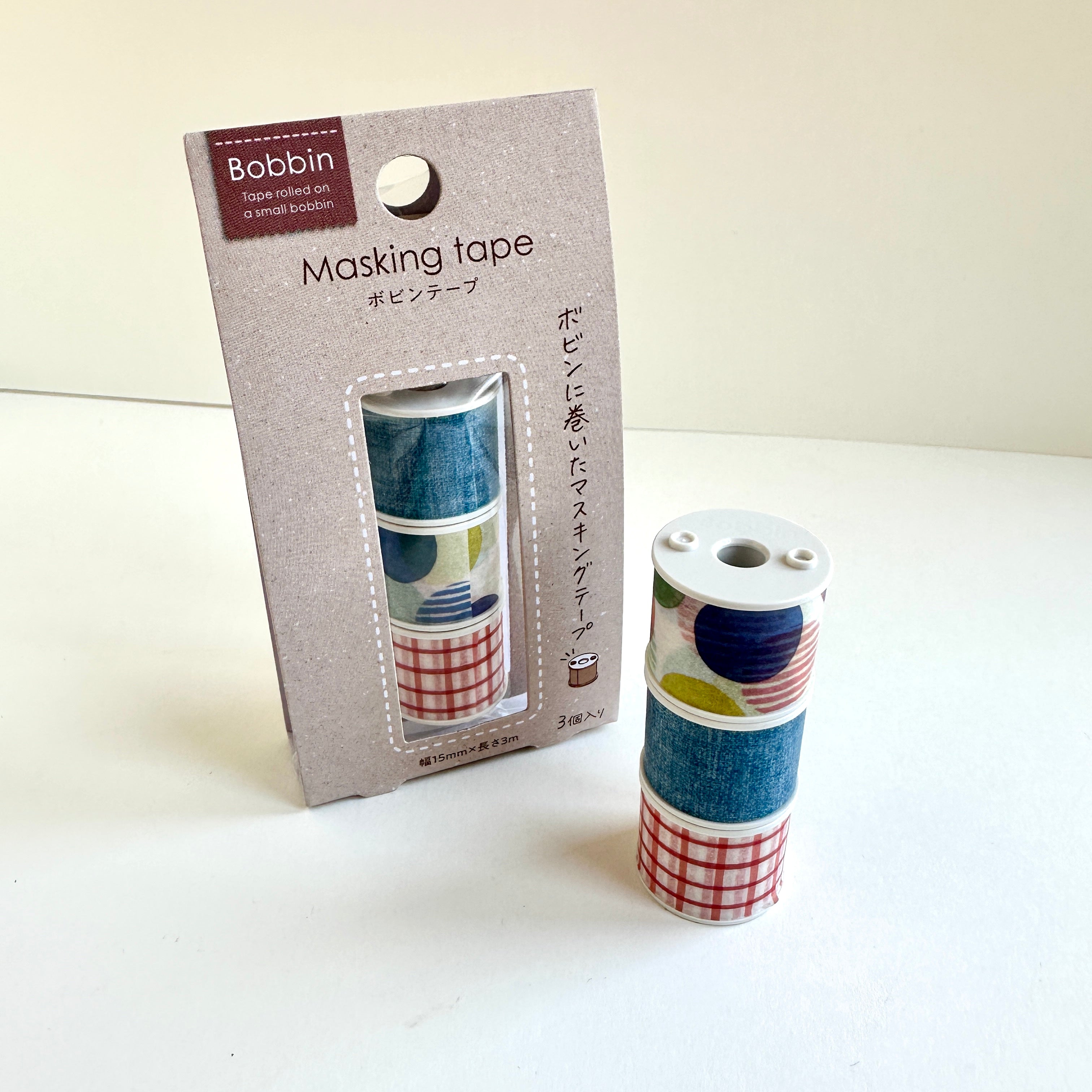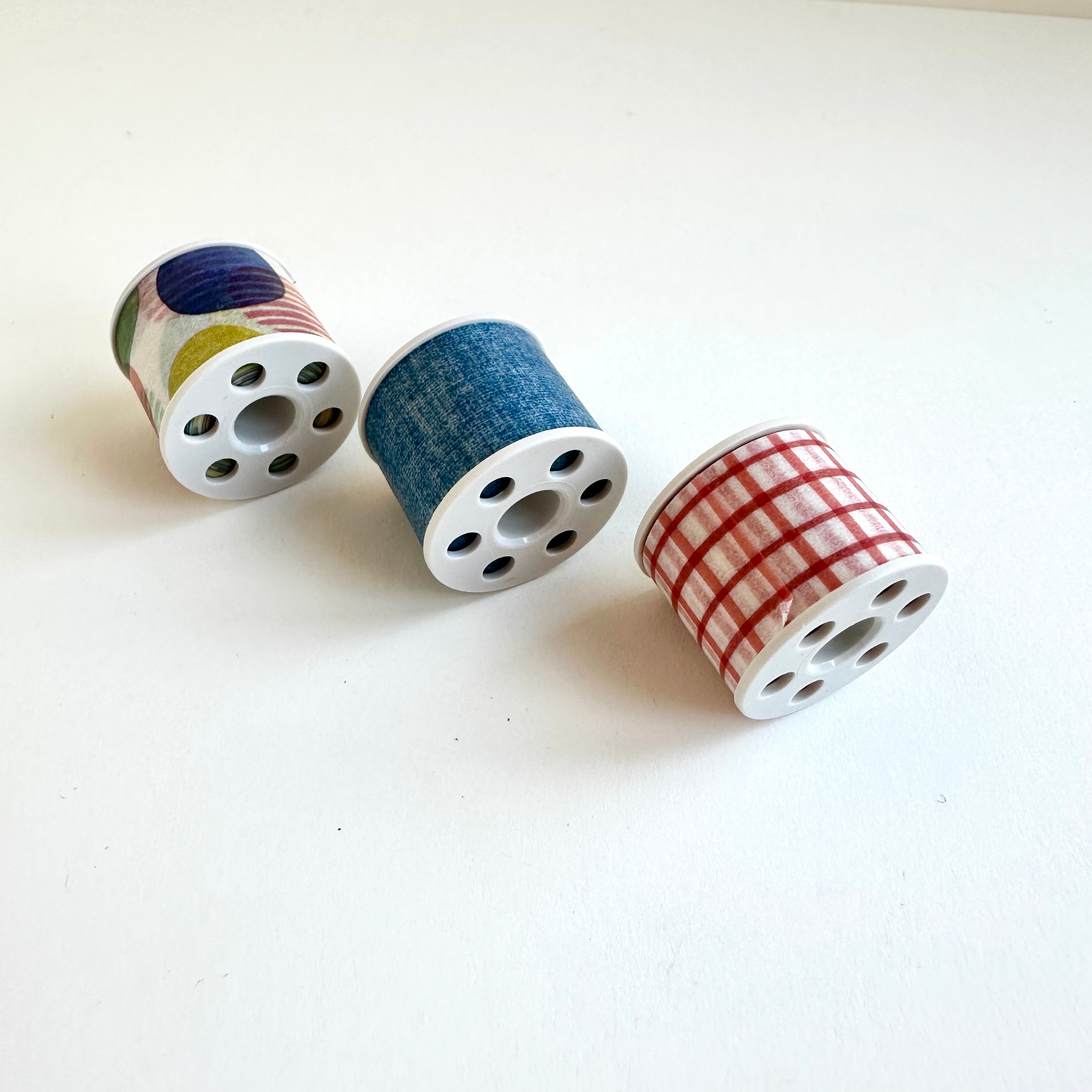 This set of three bobbins are made for use with the Kokuyo Bobbin Winder, Bobbin Case and matching Petit Cutters. Includes three designs of delightful washi tape, so once you’ve used them up you can reuse the bobbins with your favourite washi tapes.
