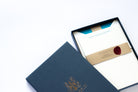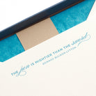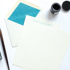 Each box set contains 15 printed A5 sheets, letterpress printed in peacock blue ink onto our very own 160gsm, 100% cotton paper. With 15 peacock blue tissue lined C6 envelopes, and 5 plain continuation sheets, all presented in a beautiful box and finished with our wax seal.