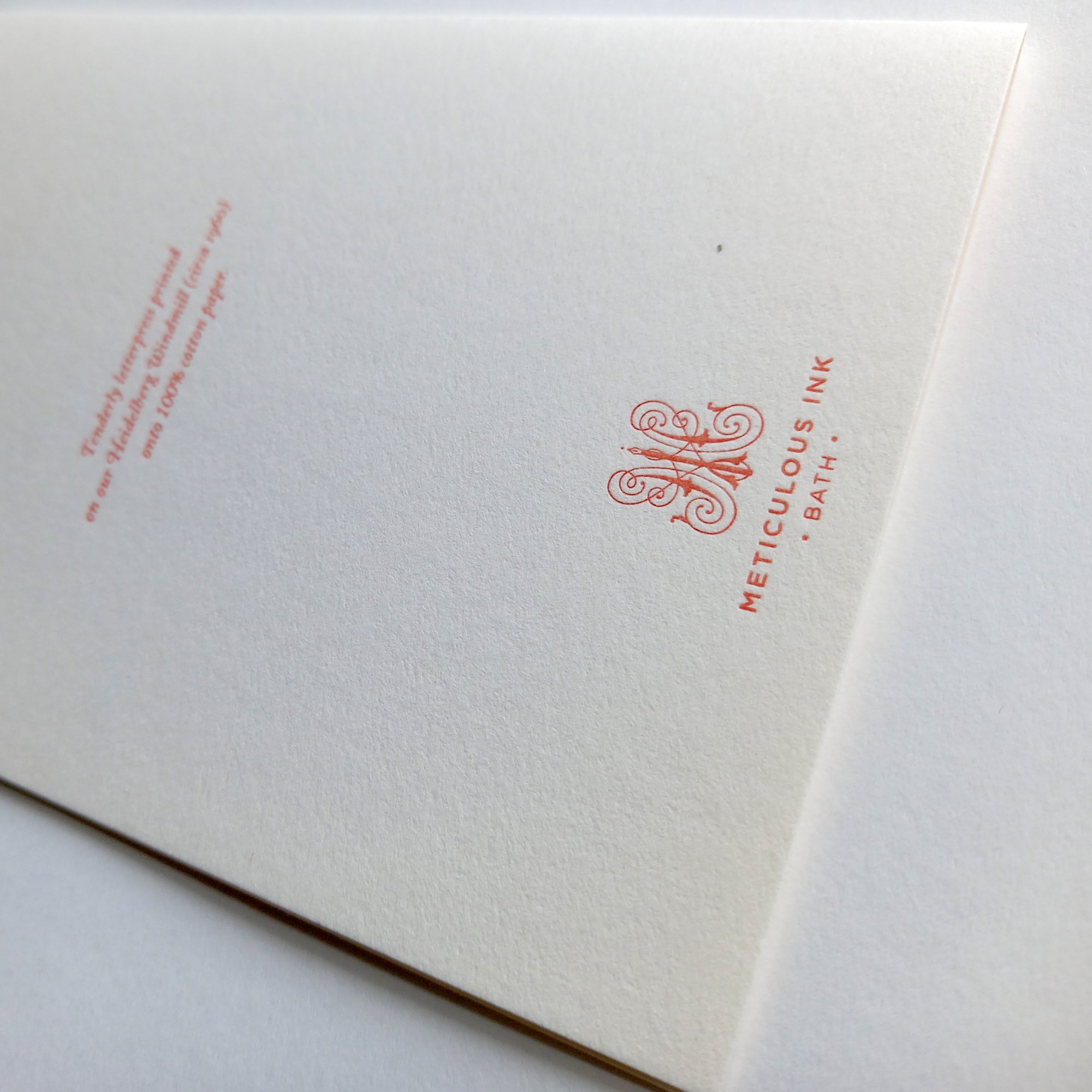 All our cards are illustrated, designed and printed in house at Meticulous Ink, Bath, UK. Each card has been lovingly letterpress printed on our 1960s Heidelberg Windmill printing presses.
