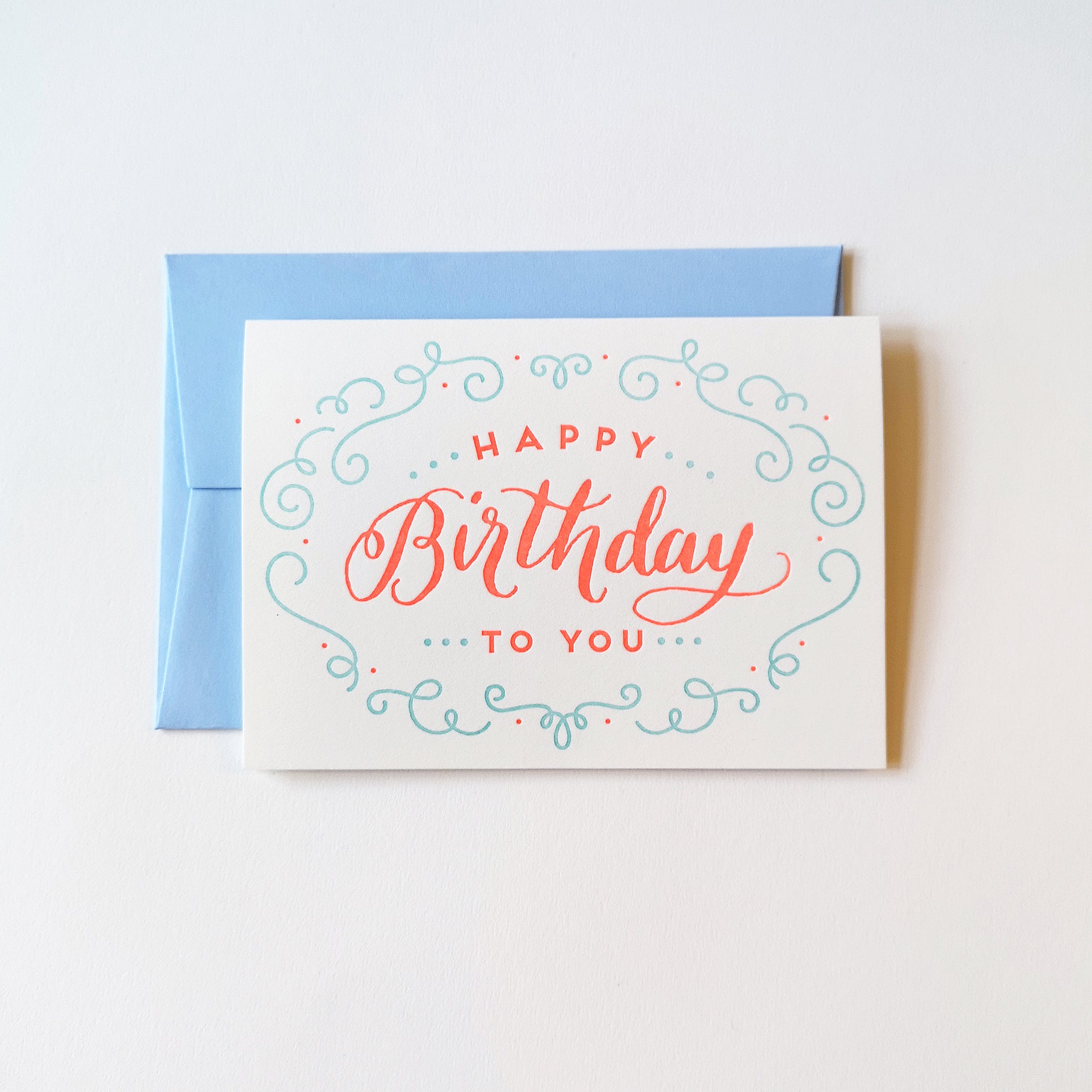 Say it in neon. A delightfully flourished Happy Birthday to you in modern and calligraphic style in two complementary colours.