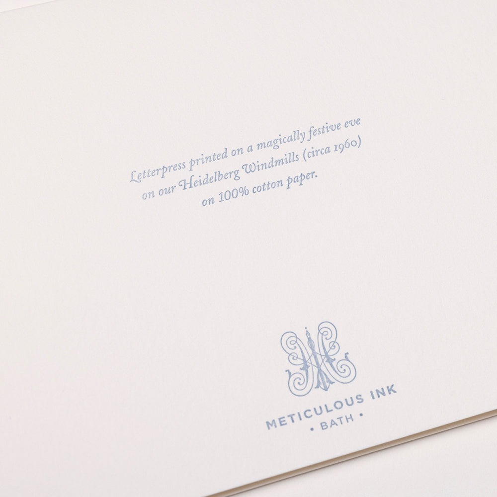 All our cards are illustrated, designed and printed in house at Meticulous Ink, Bath, UK. Each card has been lovingly letterpress and foil printed on a 1960 Heidelberg Windmill.